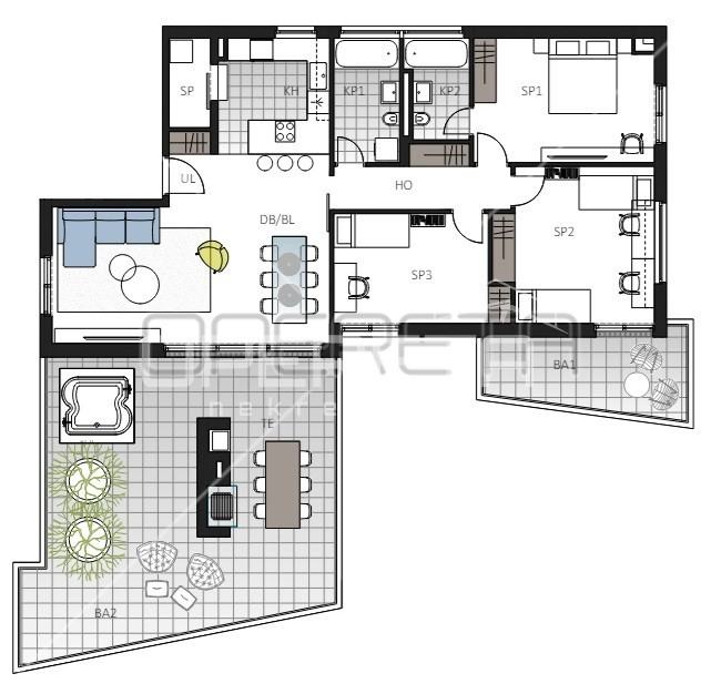 NAJAM, STAN ,Novogradnja, Maksimir. Stan se sastoji od ulaznog prostora, spremišta, kuhinje, dnevnog boravka, blagavaonice, hodnika, 2 kupaonice s wc-om, 3 spavaće sobe, 2 balkona i terase 123,94 m2 NKP.