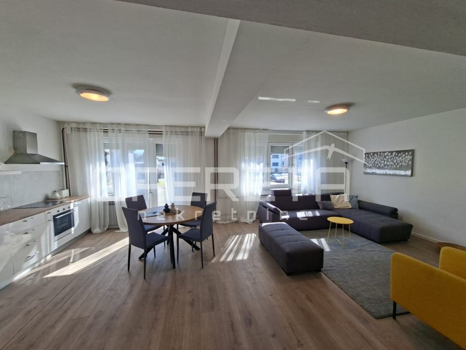 Sastoji se od prostranog "open space" koncepta; kuhinja, blagovaona i dnevni boravak, komforma spavaća soba , elegantna kupaonica te balkon s prekrasnim pogledom na park i zelenilo. Stan obiluje prirodnim svijetlom tijekom cijelog dana.