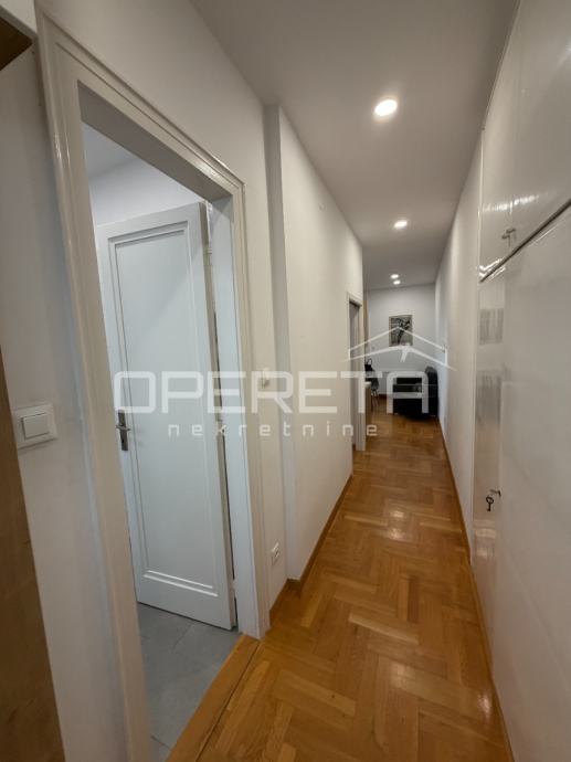 Iznajmljuje se stan površine 46, 51 m2, dugoročni najam, nalazi se na 7. katu zgrade u strogom centru grada, u neposrednoj blizini tramvaja (10 minuta hodanja do Trga bana Jelačića). Zgrada ima lift. Stan je kompletno namješten i useljiv odmah. Sastoji se od ulaznog hodnika, dvije spavaće sobe, dnevnog boravka i kuhinje te jedne kupaonice s wc-om. Stanu pripada velika krovna terasa. Vrlo tih i ugodan za život. Polog : 1 mjesečna najamnina.