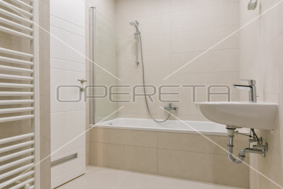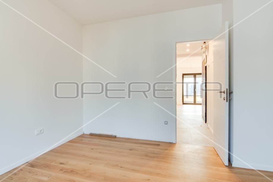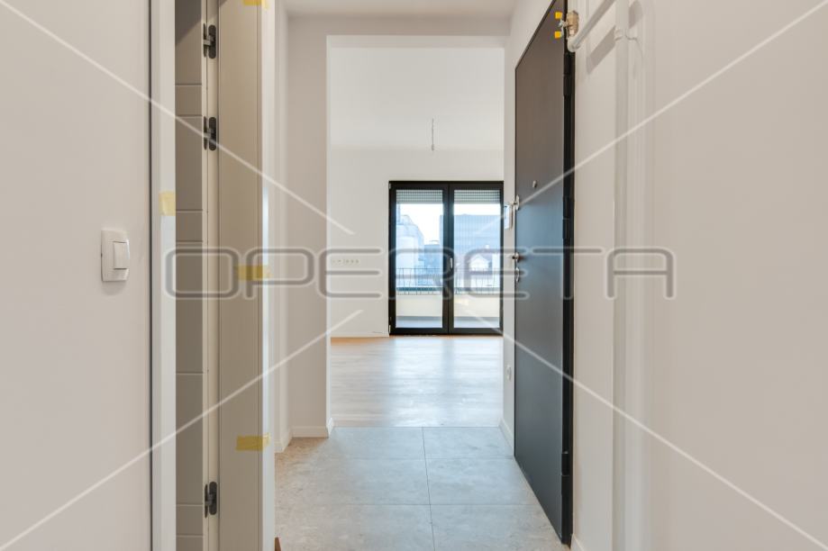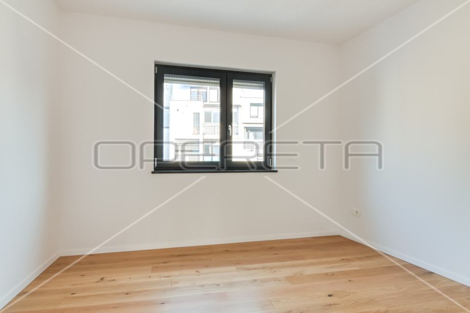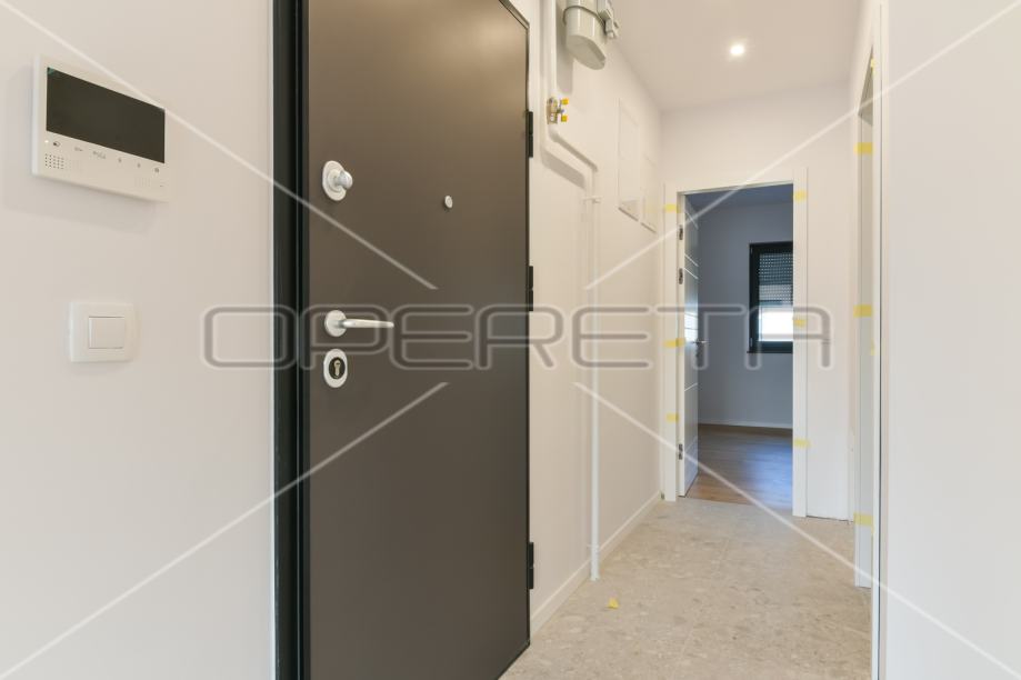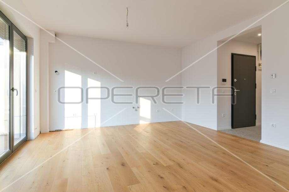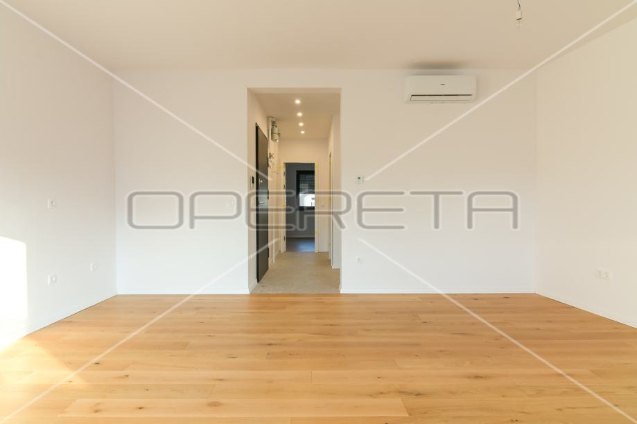 Sastoji se od ulaznog hodnika, kupaonice, toaleta, dnevnog boravka s kuhinjom ukupne kvadrature 23,53 m2, prostrane spavaće sobe i terase. Vrhunska gradnja, aluminijska stolarija, dizalice topline, keramika prve klase, protuprovalna vrata, prostor je klimatiziran.