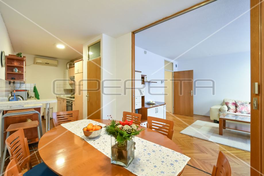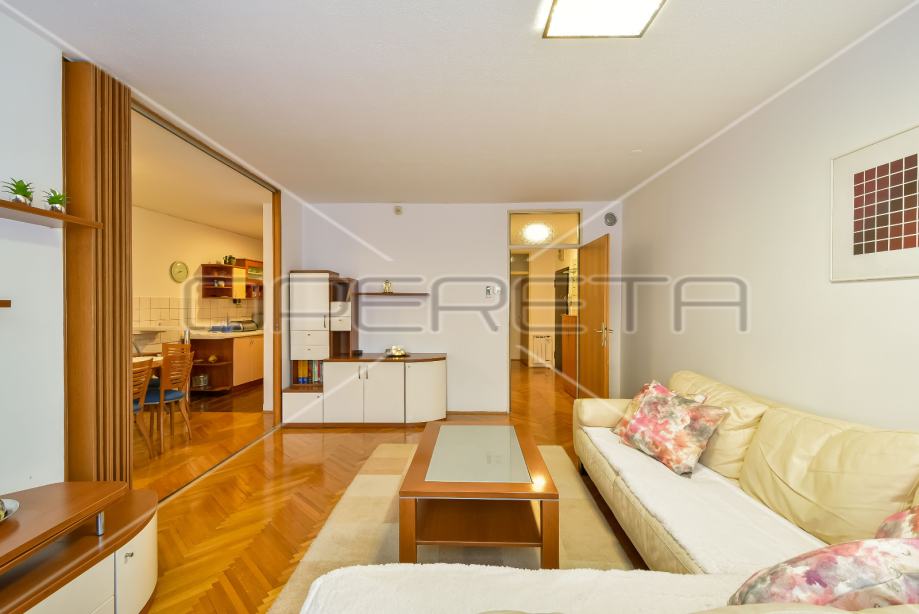 Iznajmljuje 3.5 soban stan, prostran, pun svijetlosti, na ekskluzivnoj lokaciji u Vlaškoj ulici, u neposrednoj blizini glavnog zagrebačkog trga, na nekoliko minuta od parka Ribnjak, tramvajske stanice i supermarketa. Stan se iznajmljuje potpuno namješten, moderno uređen, opremljen svim potrebnim kućanskim aparatima. Sastoji se od ulaznog hodnika, dnevnog boravka sa kuhinjom i blagovaonicom, smočnice, kupaonice, zasebnog WC-a, dvije spavaće sobe te male radne sobe. Stanu pripada i spremište, parkirno mjesto u dvorištu zgrade (pod rampom) i loggia veličine 4m2.