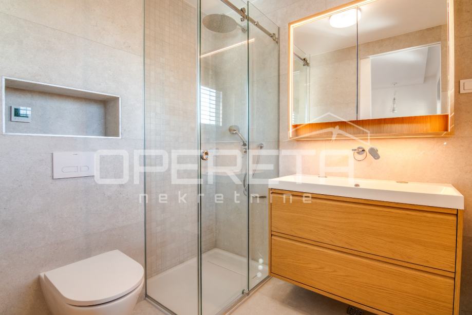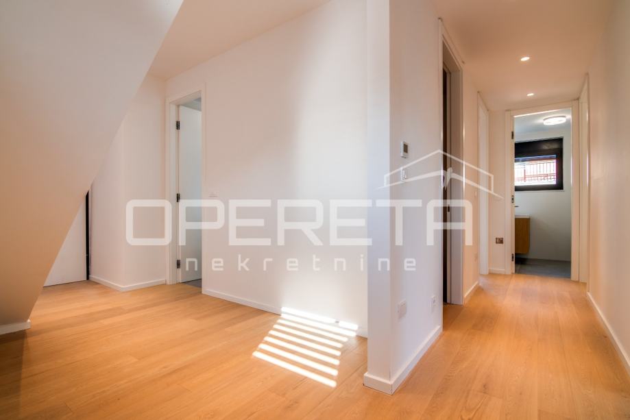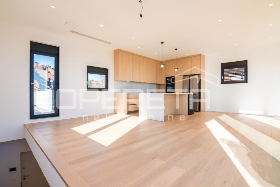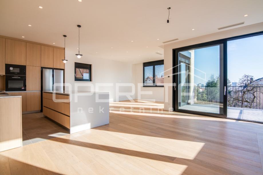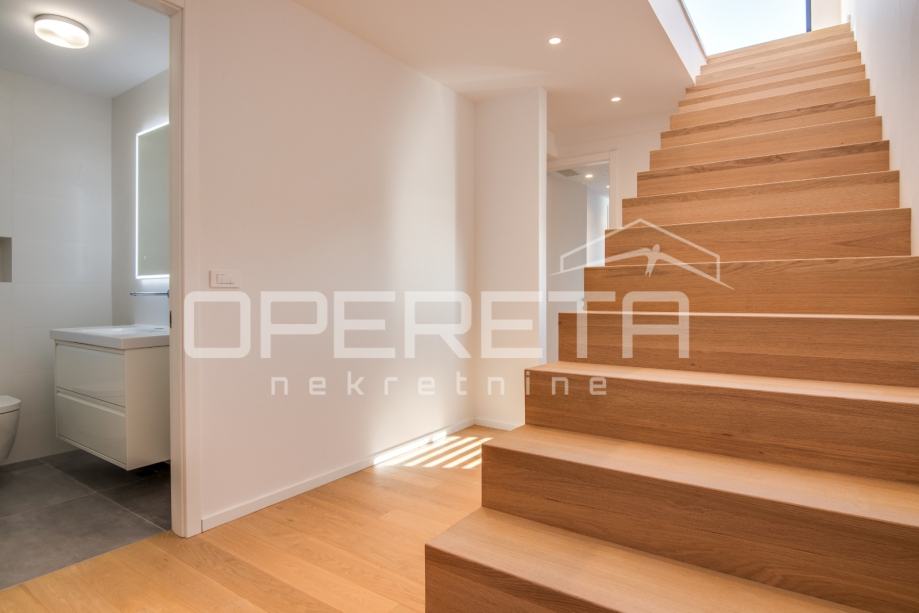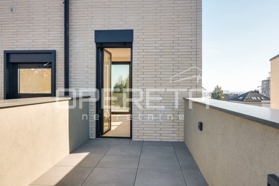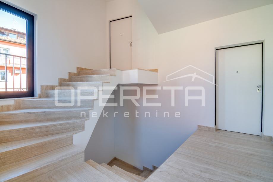 Stan ima 103m2 i sastoji se od: dnevnog boravka koji sa kuhinjom i blagovaonicom čini prelijepi open space prostor I nalazi se na drugoj etaži stana, 3 spavaće sobe od kojih jedna ima svoju kupaonicu te jedna odvojena kupaonica se nalaze na prvoj etaži stana. Stan ima i dvije prelijepe terase te spremište od 20m2 u podrumu zgrade. Stanu pripada i garaža.