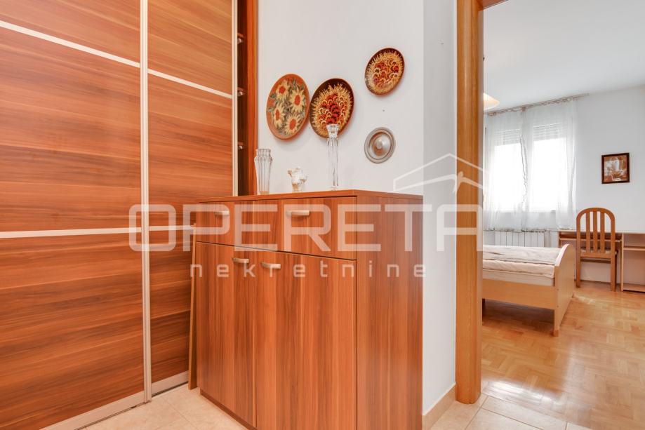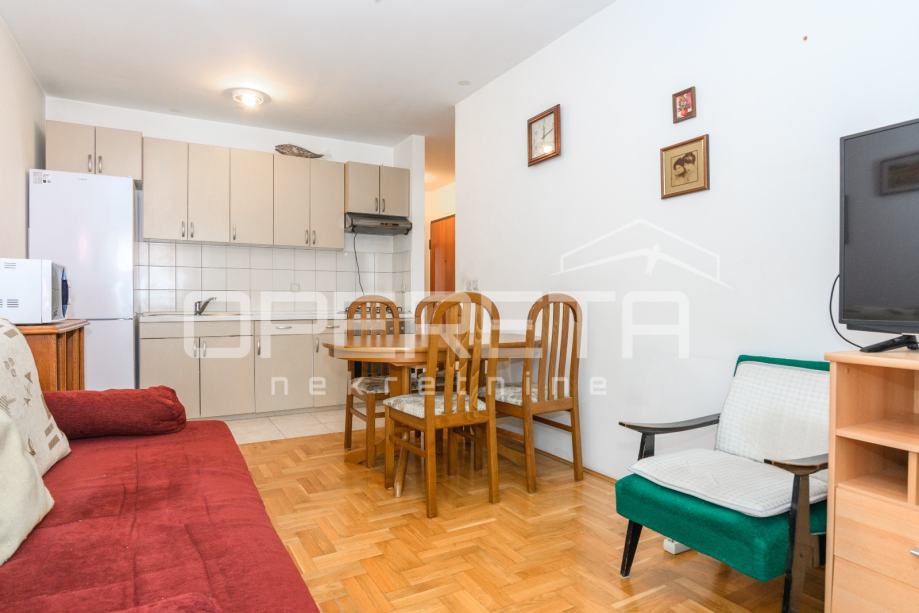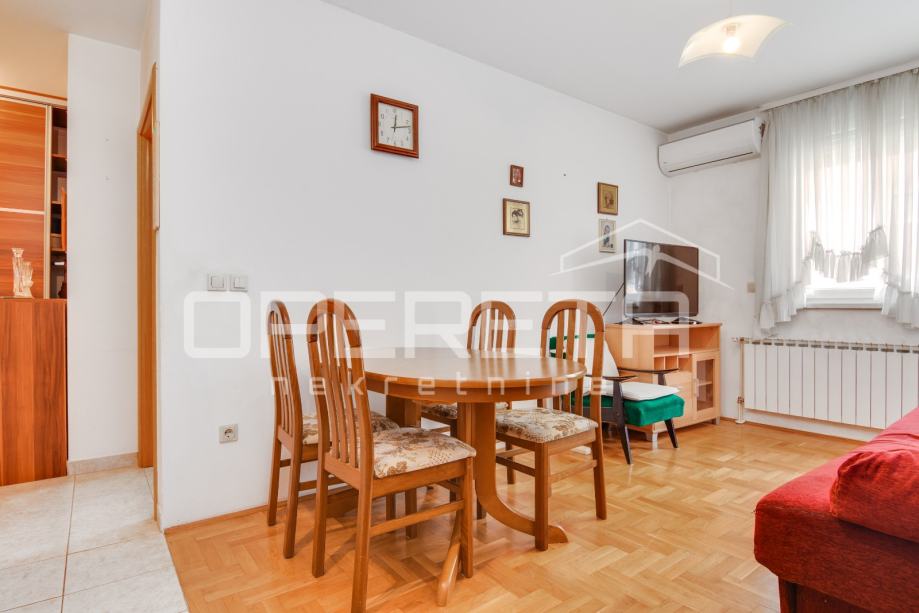 Iznajmljuje se 2soban stan u prizemlju zgrade. Sam stan ima 41m2 te mu pripada vanjsko parkirno mjesto. Sastoji se od ulaznog hodnika, dnevne sobe u komunikaciji sa kuhinjom, kupaonice sa wc-om i spavaće sobe. Dostupan nakon 15.8.2025.
