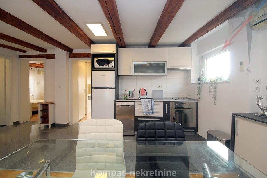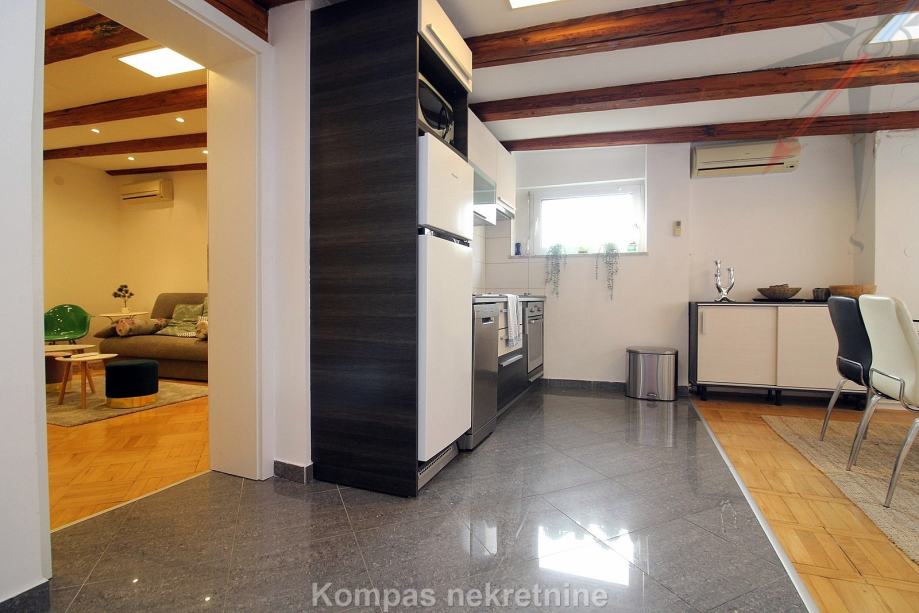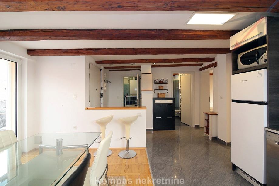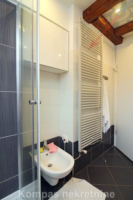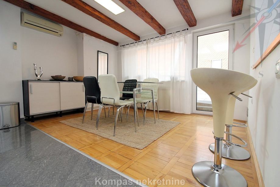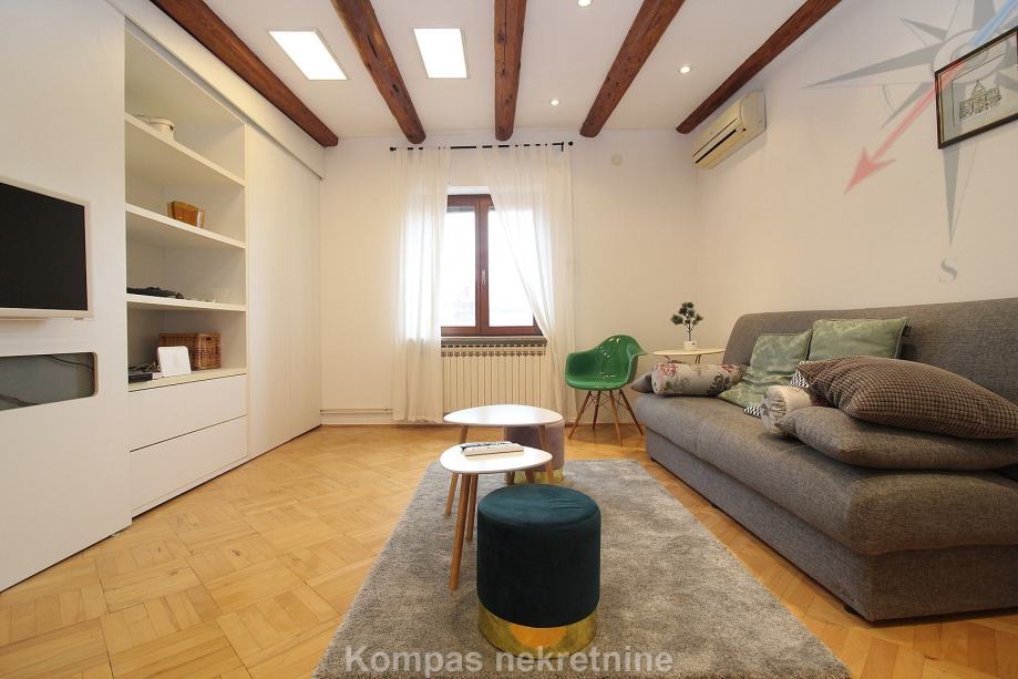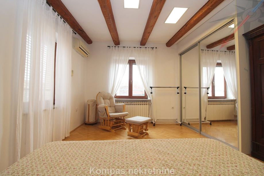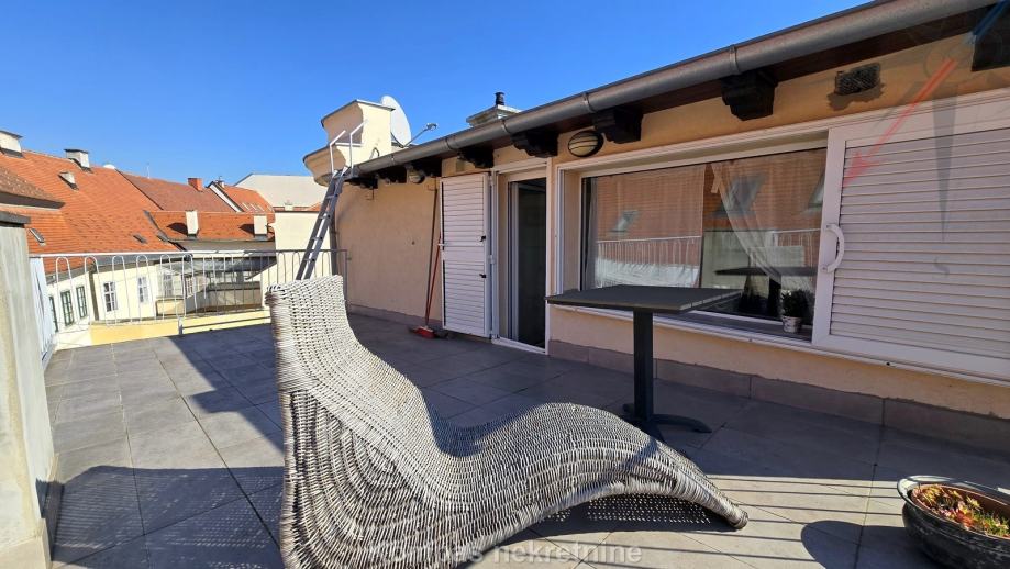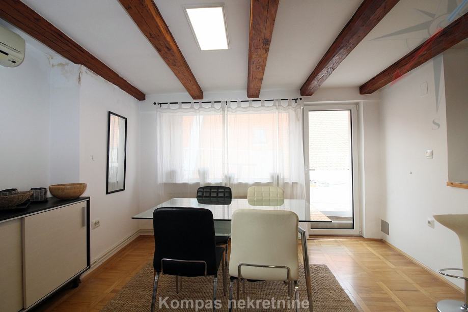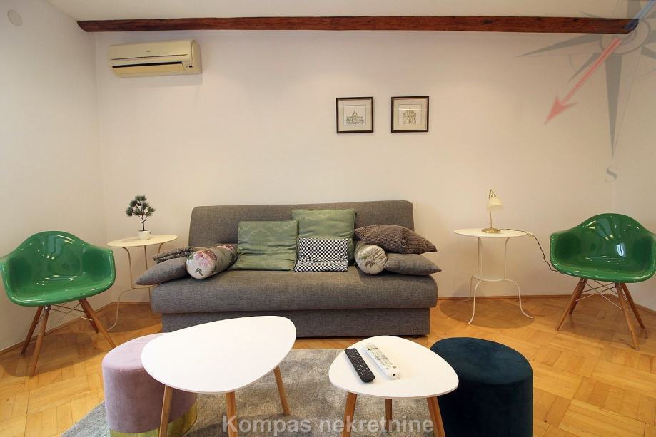 Namješten dvosoban stan ( 70 m2 ) na drugom katu stambene zgrade bez lifta, Gornji grad, Centar. Sastoji se od hodnika, kuhinje, dnevnog boravka s izlazom na terasu ( 15 m2 ), spavaće sobe, kupaonice, ostave. Ima protuprovalna vrata, klima uređaj, mogućnost brzog interneta. Držanje kućnih ljubimaca i pušenje u stanu nije dozvoljeno. Stanu pripada parkirno mjesto u dvorištu zgrade. Nalazi u blizini javnog prijevoza i svih sadržaja strogog centra grada.