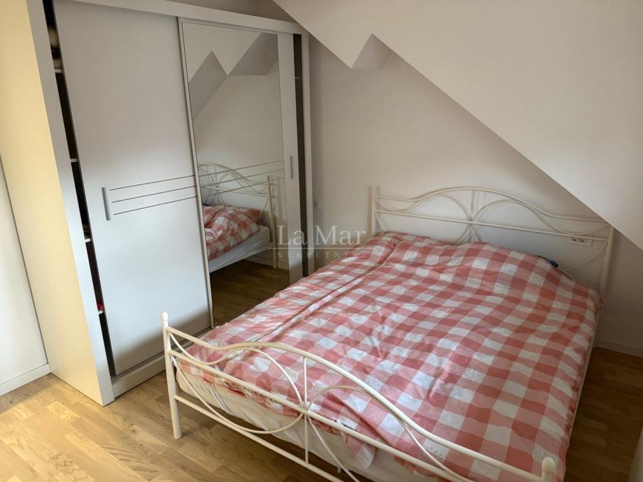 Stan se nalazi u potkrovlju kuće te se sastoji od dvije spavaće sobe, kuhinje, dnevnog boravka i blagovaone.