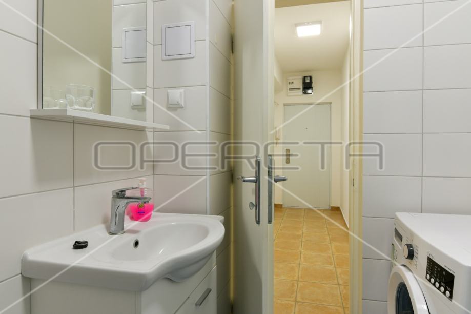 Stan je renoviran, ugrađen je novi parket, opremljen je novom kuhinjom i uređajima te novim namještajem u dnevnoj/spavaćoj sobi. Krevete je moguće koristiti pojedinačno, kao krevete na kat, ili ih postaviti u jedan bračni krevet. U stan se nalazi i zatvorena loggia te manja ostava i kupaonica s perilicom rublja.