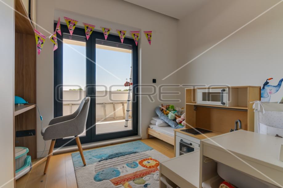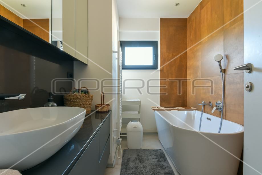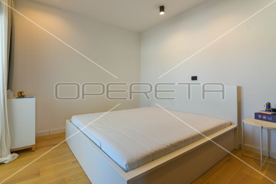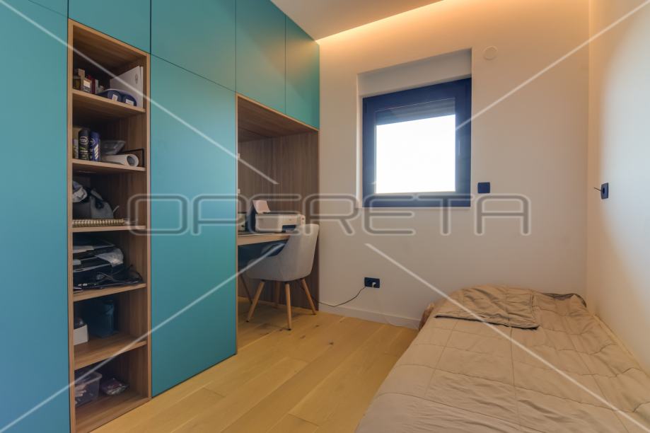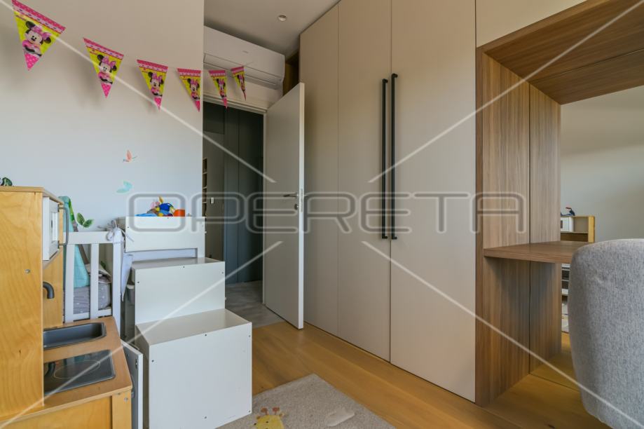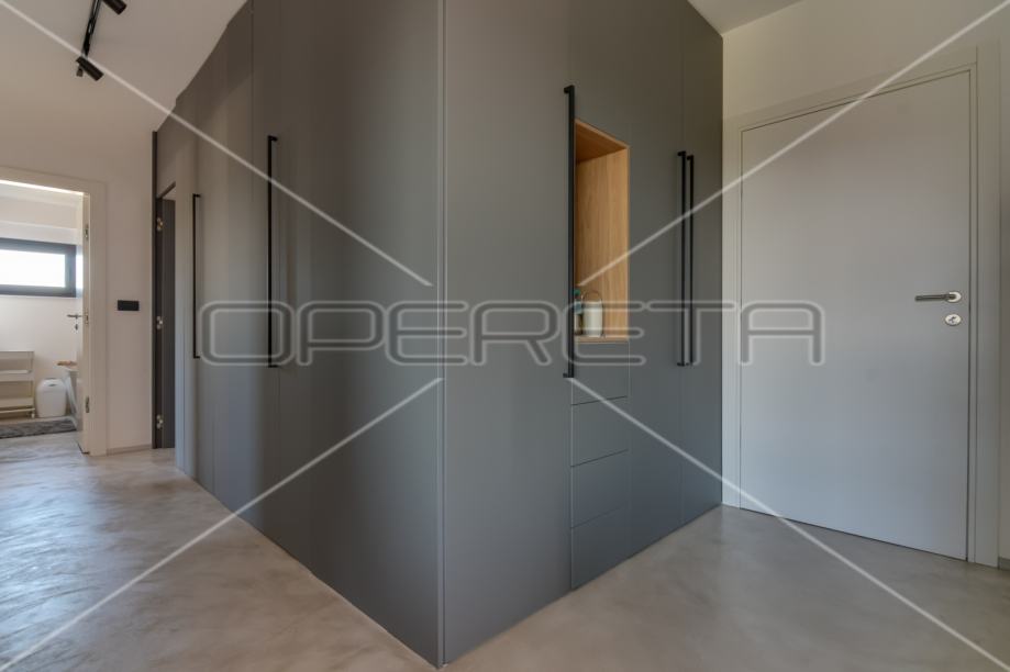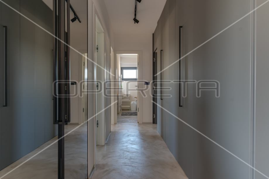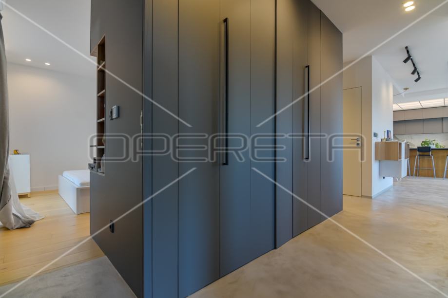 Stan je opremljen električnim roletama, vrhunskih kuhinjskim uređajima i dizajnerskim namještajem, a u sobama i hodnicima ugrađeni su ormari koji pružaju rješenje spremišnog prostora.