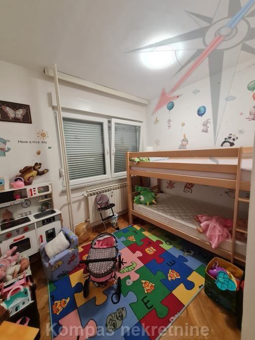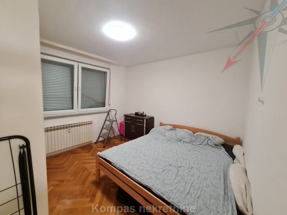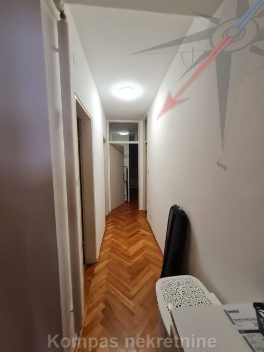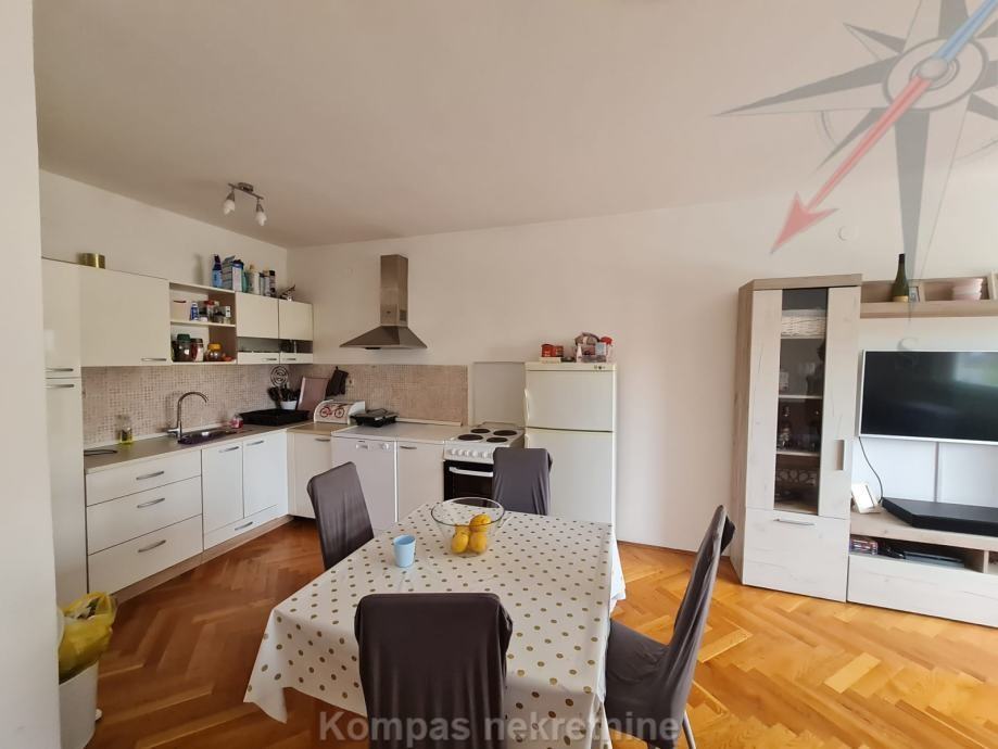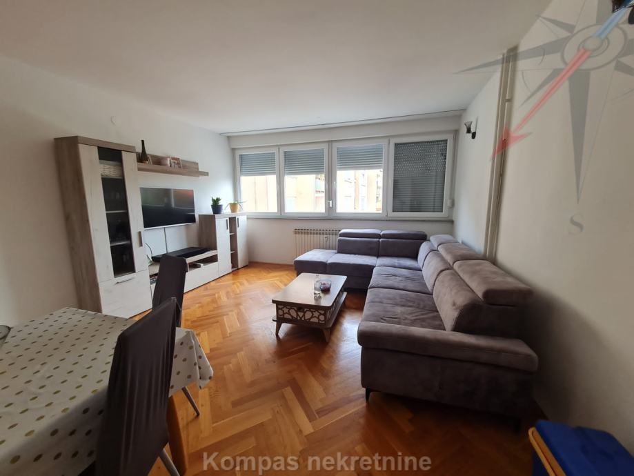 Namješten trosoban stan površine 60 m2, na prvom katu stambene zgrade bez lifta. Renoviran 2023. godine kada su postavljene nove instalacije struje i vode, parketi, kupaonica i novi toalet. Sastoji se od ulaznog prostora, kuhinje, dnevnog boravka, dvije spavaće sobe, kupaonice, toaleta. Ima protuprovalna vrata, video portafon, mogućnost brzog interneta, grijanje na toplanu. Besplatno parkiranje moguće je u dvorištu zgrade. Nalazi se u blizini svih važnijih sadržaja, par minuta hoda do glavnog gradskog trga.