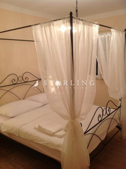 Iznajmljuje se prekrasan, potpuno opremljen stan površine 55 m², smješten na prvom katu kuće. Stan odiše udobnošću i funkcionalnošću te je uređen u elegantnom talijanskom stilu, što mu daje poseban šarm i toplinu.