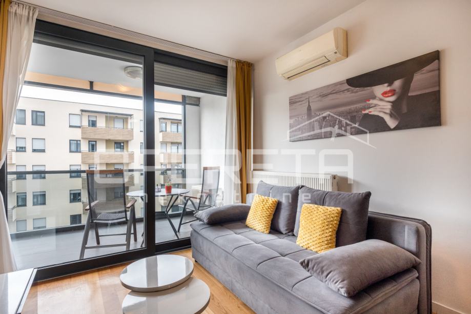 Iznajmljuje se potpuno uređen dvosoban stan u sklopu atraktivnog poslovno-stambenog kompleksa Nova Galerija.