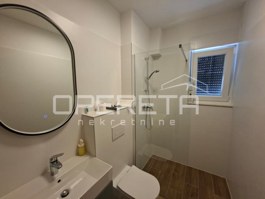 Kupatilo je moderno uređeno i opremljeno svim potrebnim sadržajima. Ono što posebno izdvaja ovu nekretninu je velika terasa od čak 60 m2, savršena za uživanje na otvorenom, druženja s obitelji i prijateljima ili opuštanje u toplim ljetnim večerima.