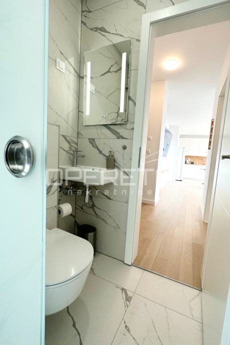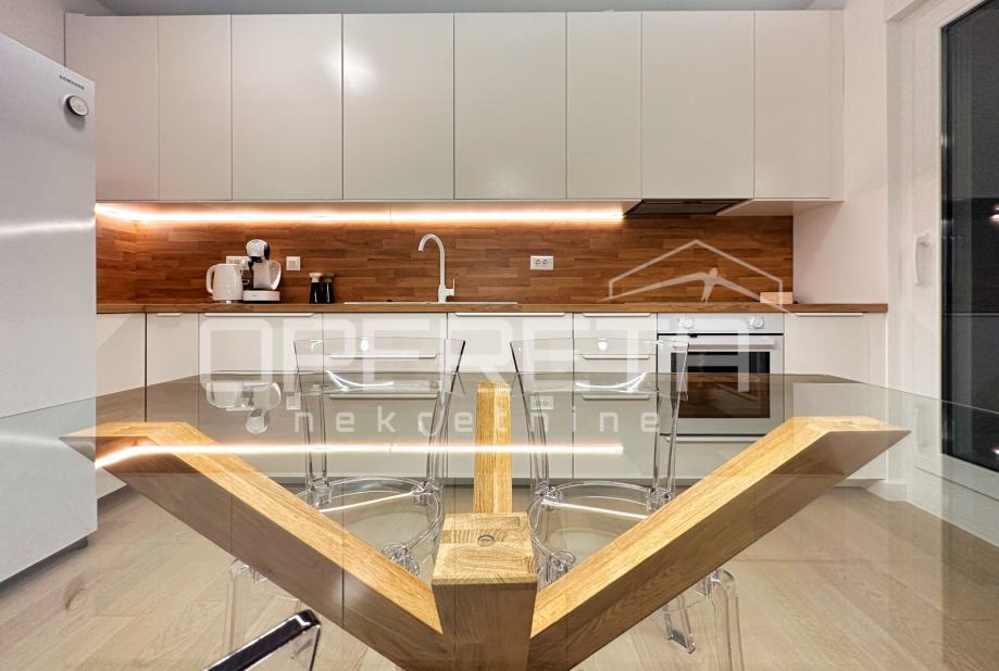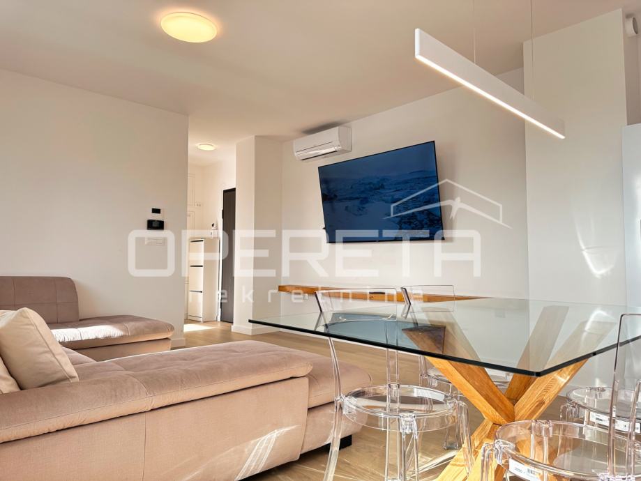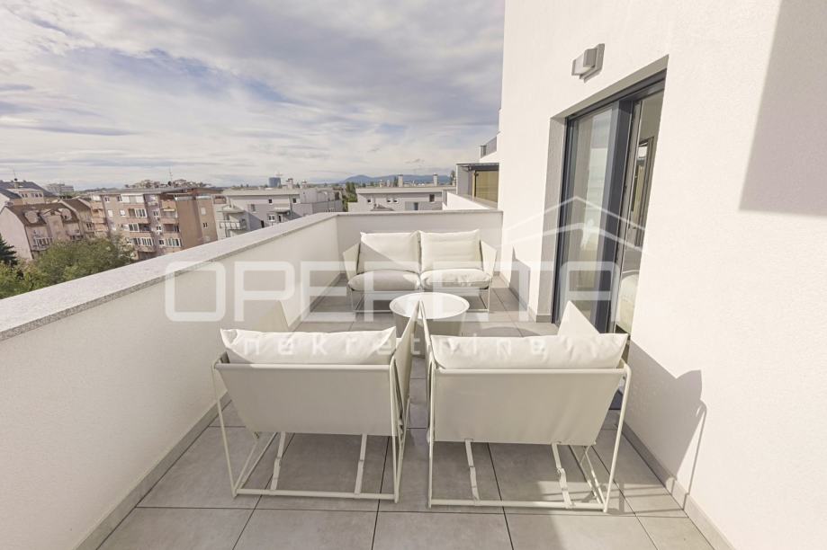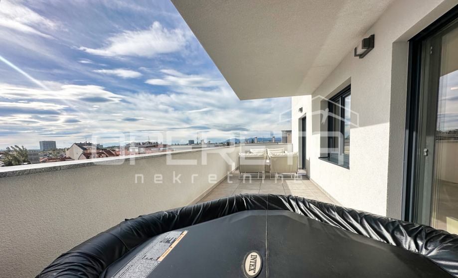 Iznajmljuje se stan na izvanrednoj lokaciji, u srcu Trešnjevke, u blizini svih bitnih sadržaja za svakodnevni život. Stan ima 63 kvadratna metra stambenog prostora sa 100 kvadrata terase na kojoj se nalaze sauna i jacuzzi. Luksuzno i moderno opremljen, a pripada mu i parkirno mjesto u garaži koja je pod 24-satnim video nadzorom i spremište od 5 m2.