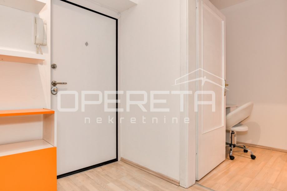 Sastoji se od blagovaonice i kuhinje, dnevnog boravka, kupaone s wc-om, te odvojene sobe s krevetom i velikim ormarom. Kompletno namješten i opremljen stan, kućni ljubimci nisu dozvoljeni. Postoji mogućnost parkiranja iza rampe u dvorištu zgrade. Zgrada je uredno održavana, režije su minimalne i po potrošnji.