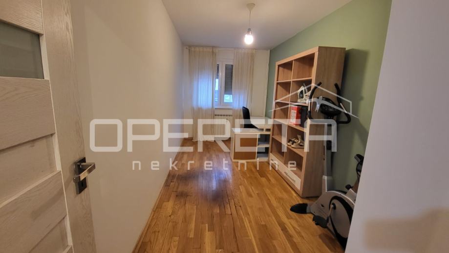 NAJAM, STAN Kuzminečka, 3soban. Stan se sastoji od ulaznog prosotora, hodnika, 2 spavaće sobe, kupaonice, dnevnog boravka povezanog sa kuhinjom, ostave i spremišta. Stan je renoviran u etapama (PVC stolarija, protuprovalna vrata, instalacije), namještaj ostaje kako je vidljivo na slikama. Vrhunska lokacija! Kućni ljubimci dozvoljeni!