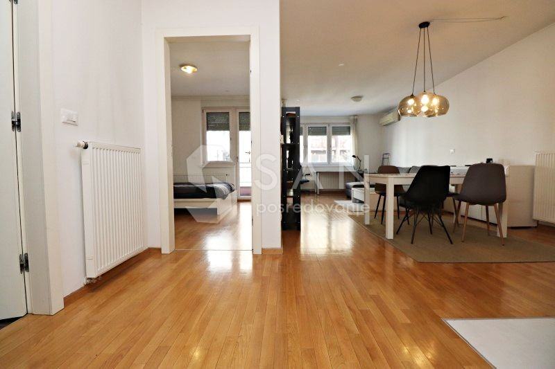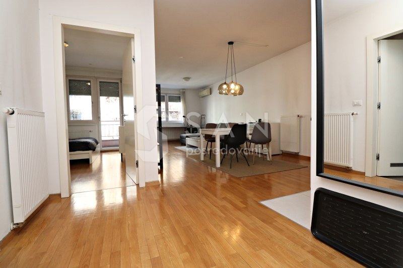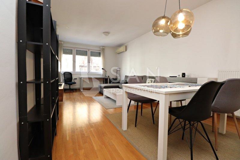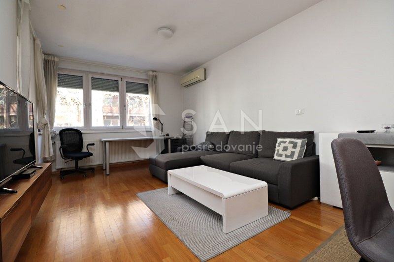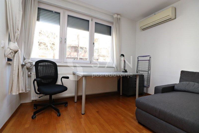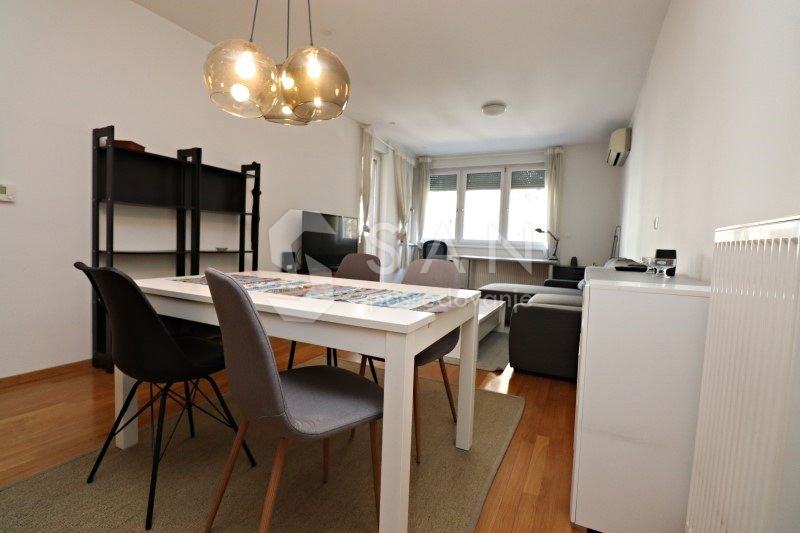 A furnished one-story, two-room apartment with a living area of 60 m² is available for rent. The apartment is located in a residential building situated in the urban part of the Črnomerec neighborhood. It consists of an entrance hall, a balcony, two spacious rooms (bedroom and living room), a bathroom, a furnished and equipped kitchen with a dining area, and a storage room located in the building's basement. The apartment is designed to be suitable for all types of tenants, such as working singles or employed couples without pets. It features a functional kitchen fully equipped with practical household appliances, including a refrigerator with a freezer compartment, a stove, an oven, and a kitchen ventilation system (hood). The apartment's windows are fitted with wooden frames that provide maximum thermal and sound insulation. With its north-south orientation, the apartment benefits from plenty of natural light and excellent ventilation. Pets are not allowed. Heating is provided by gas-powered central heating with individual metering, ensuring quality and safe warmth with the possibility of self-regulation. The apartment is also air-conditioned, and water is billed according to actual consumption.
