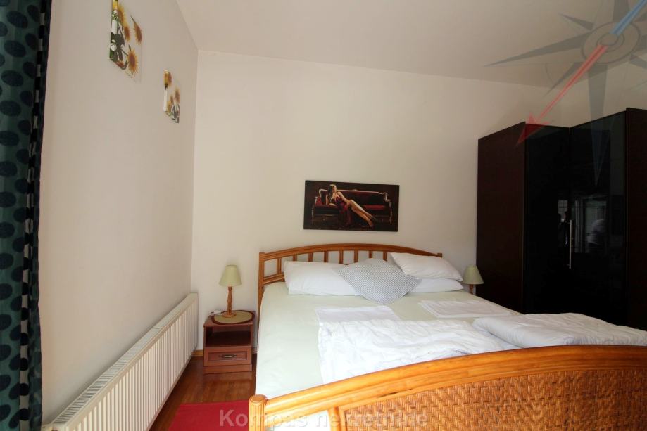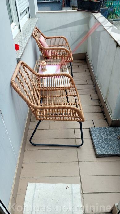 Furnished three-room apartment (70 m2) on the first floor of a newer residential building with elevator, Trsje. Consists of an entrance hall, a kitchen with a living room, two bedrooms, a bathroom and a small balcony with a view of the forest. Has an intercom, security door, a possibility of free high-speed internet, air conditioning, gas central heating. The building reserve is not paid. Has three parking spaces in front of the building. Located in a quiet street, near the bus line.