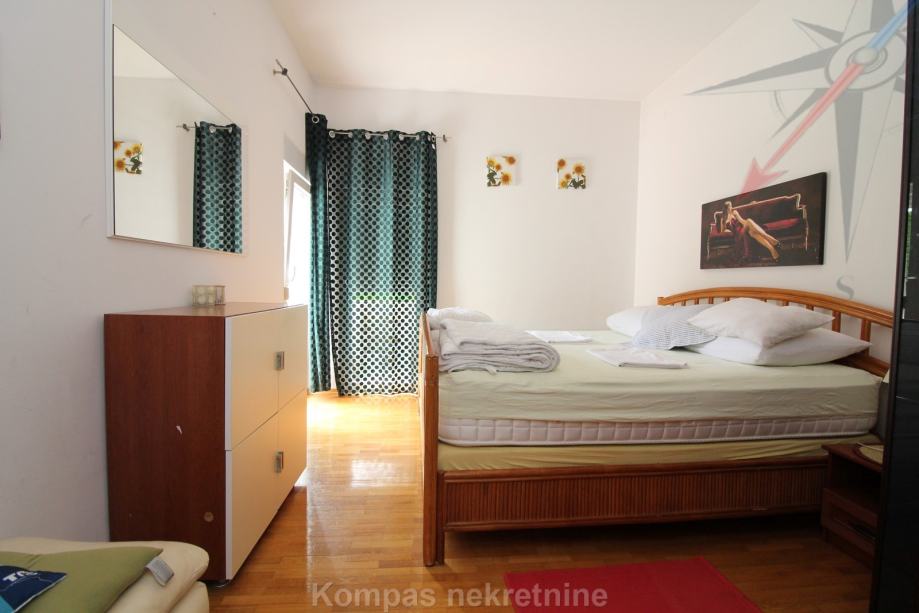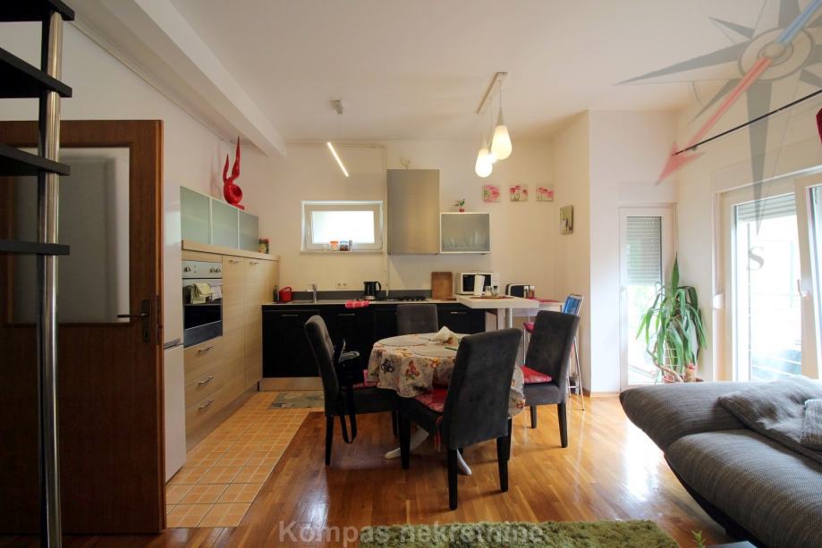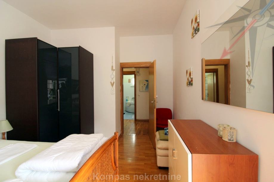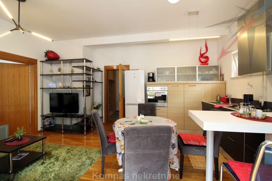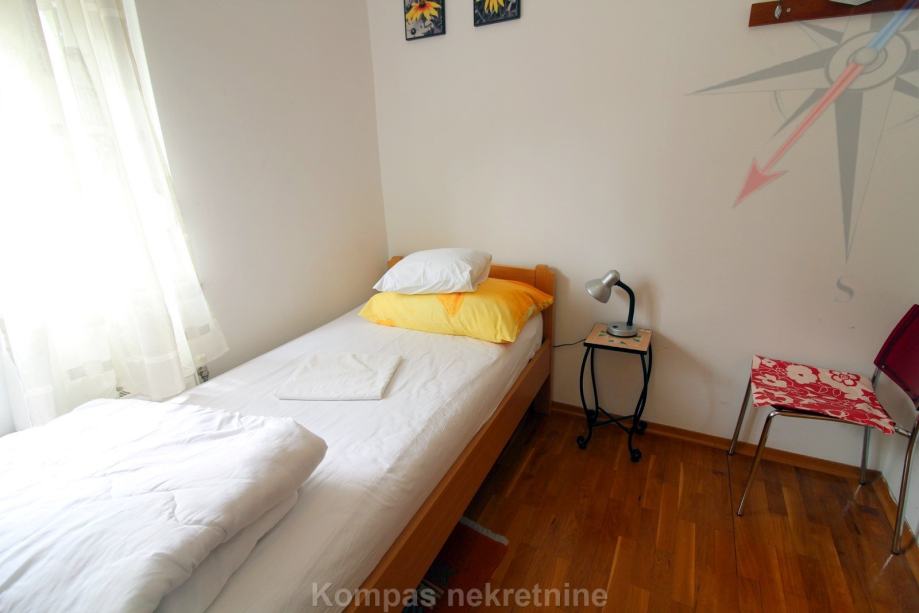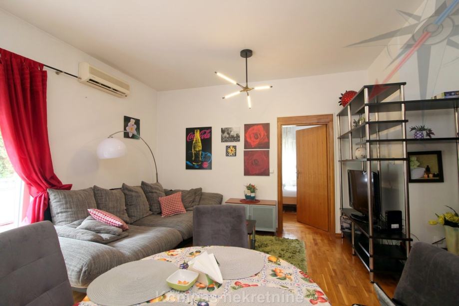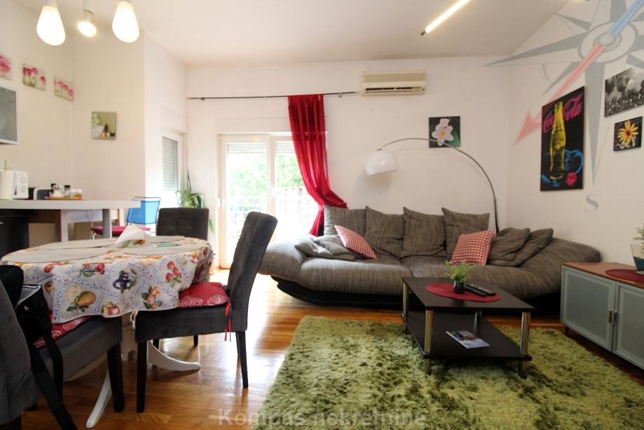 Namješten trosoban stan ( 70 m2 ) na prvom katu novije stambene zgrade s liftom, Trsje. Sastoji se od ulaznog hodnika, kuhinje sa dnevnim boravkom, dvije spavaće sobe, kupaonice i malog balkona s pogledom na šumu. Ima portafon, protuprovalna vrata, mogućnost besplatnog brzog interneta, klima uređaj, plinsko centralno grijanje. Pričuva se ne plaća. Pripadaju mu tri parkirna mjesta ispred zgrade. Nalazi se u mirnoj ulici, u blizini autobusne linije.