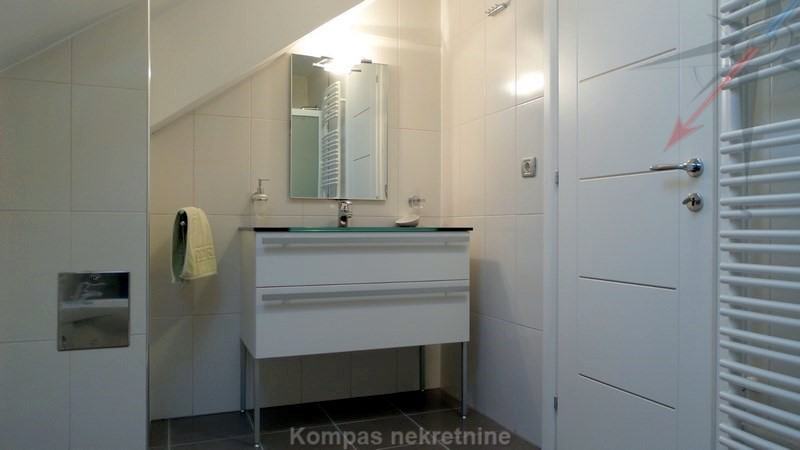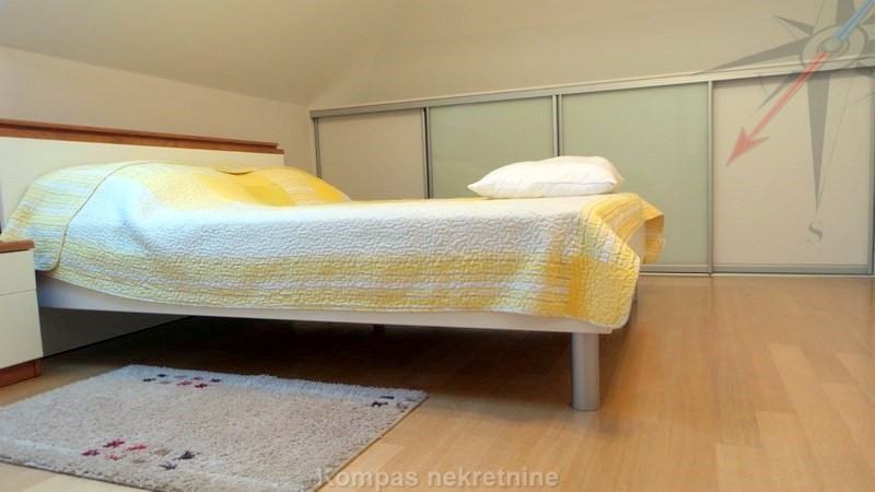 Stan ima video portafon, alarm sa senzorima u svakoj sobi, video nadzor na ulazu u objekt, protuprovalna vrata, mogućnost brzog interneta, Toshiba klima uređaje, električne rolete i žaluzine u svakoj sobi, podno grijanje u kupaoni, Velux krovne prozore sa roletama, plinsko etažno grijanje, opremljen ugradnim ormarima, vrhunskom sanitarnom opremom, grijanim stepeništem na ulazu u kuću.