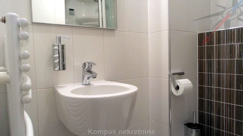 Pripada mu garaža za tri vozila od 50 m2 (nije u kvadraturi stana) sa vodom, protuprovalnim i protupožarnim vratima.