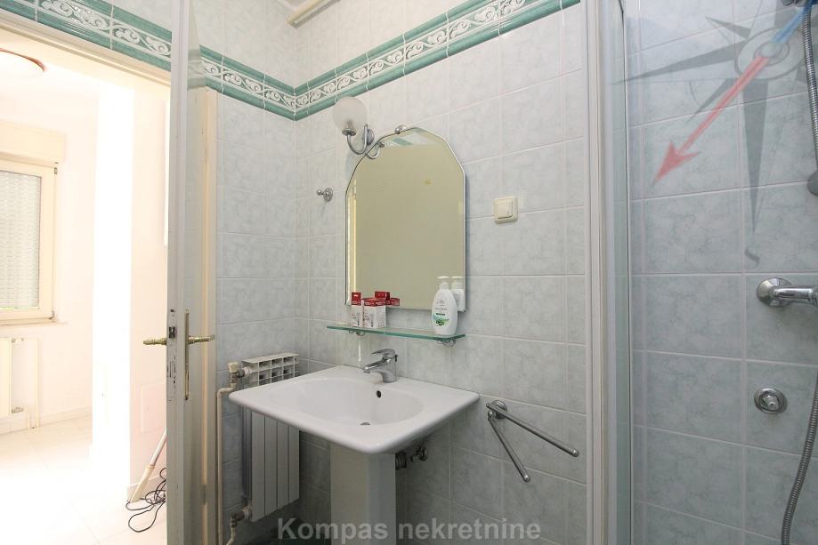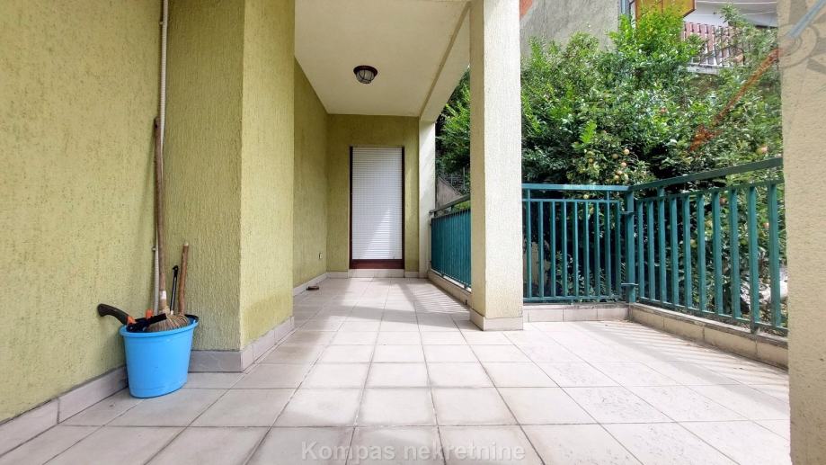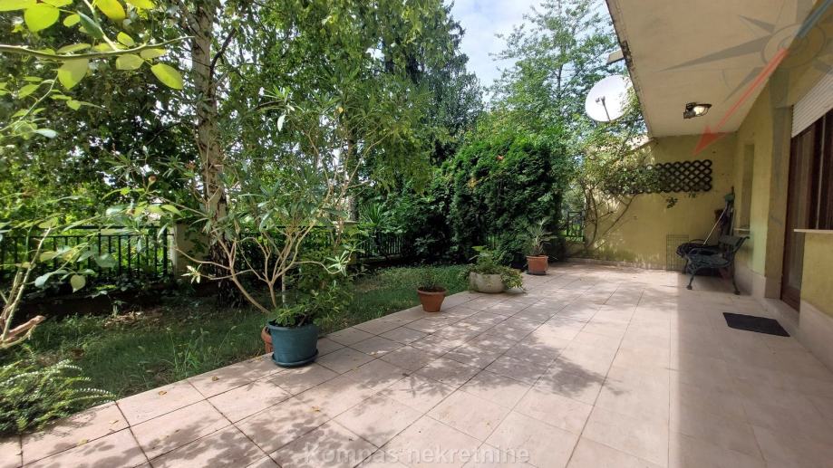 Donja etaža: ulaz sa gornje etaže, velika soba , kupaonica, izlaz na terasu s vrtom i roštiljem ( 50 m2 ).