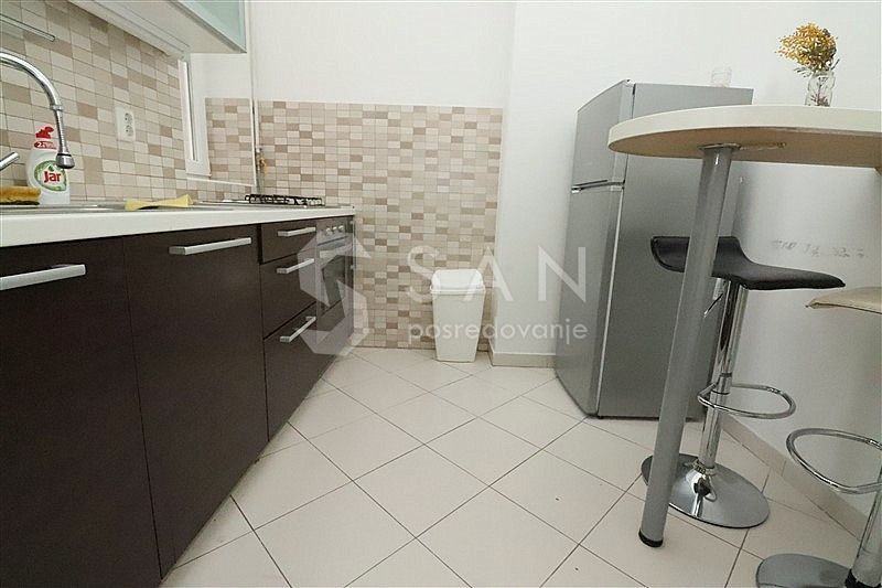 Unutrašnjost stana odiše suvremenim šarmom, nudeći udoban i ugodan prostor. Stan je potpuno opremljen i namješten s novim namještajem. Ima klima uređaj za tople ljetne dane i plinsko etažno grijanje za hladne zimske noći.