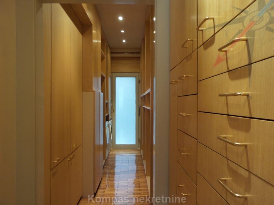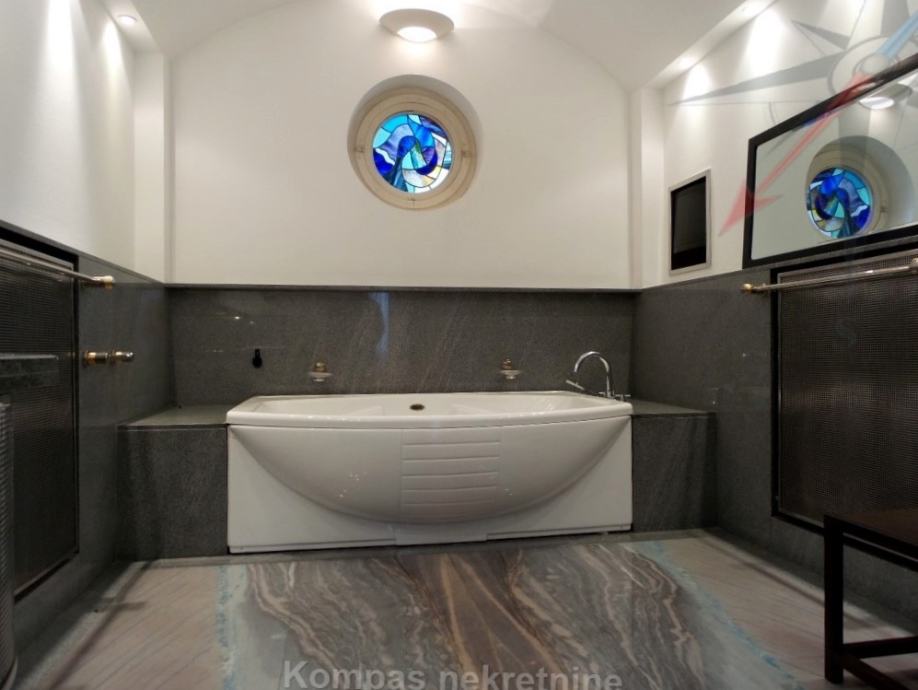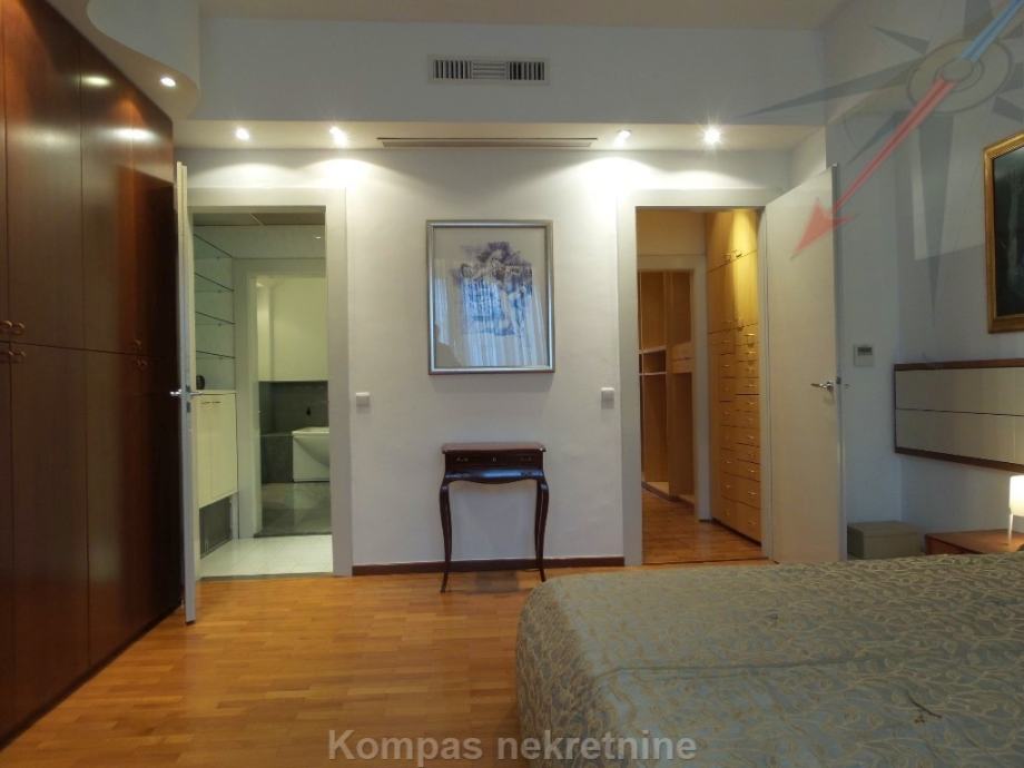 Svaka spavaća soba ima svoju kupaonicu, a glavna još i garderobu, koja završava malim balkonom na dvorišnoj strani.