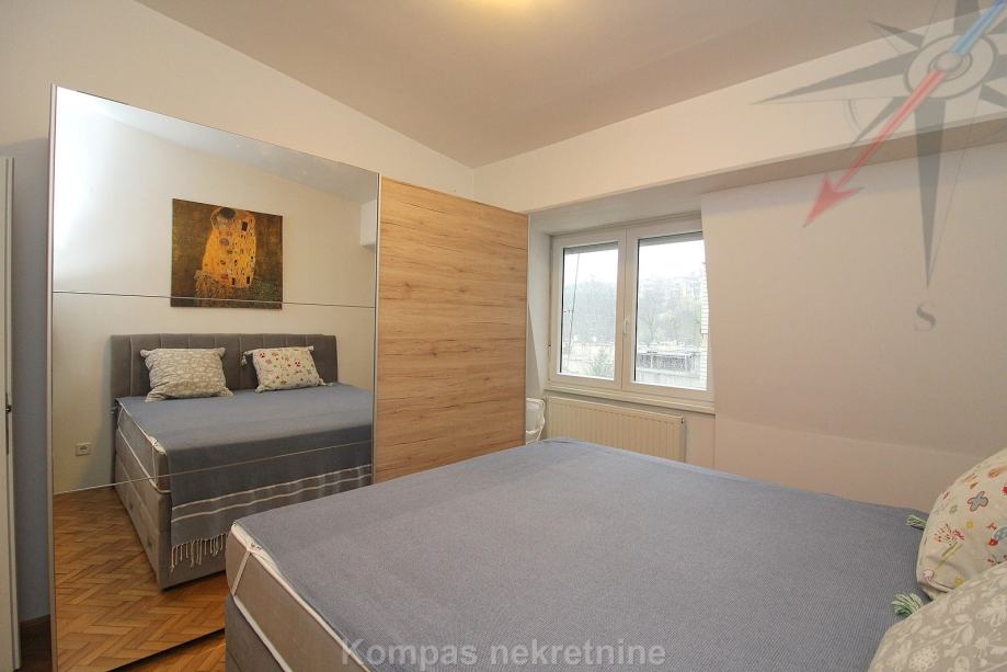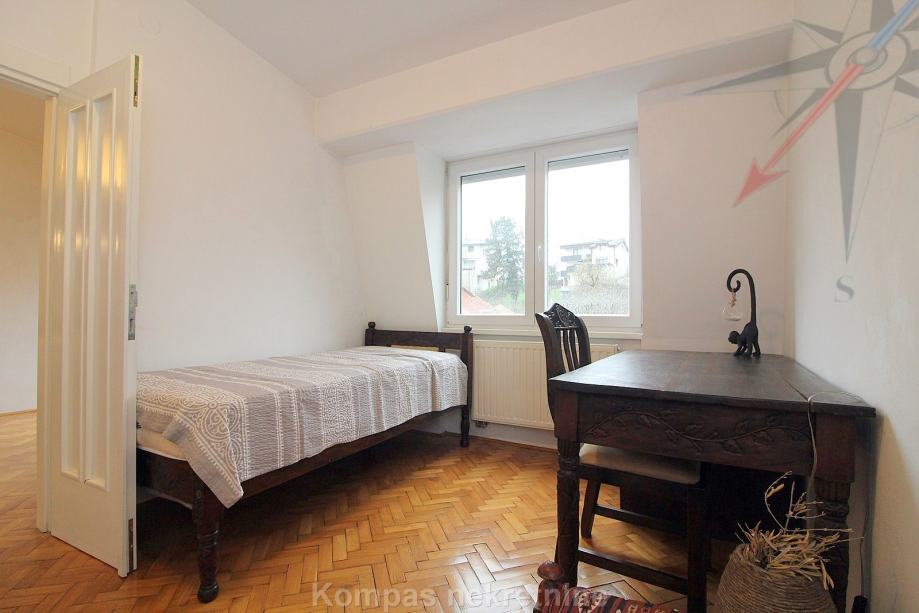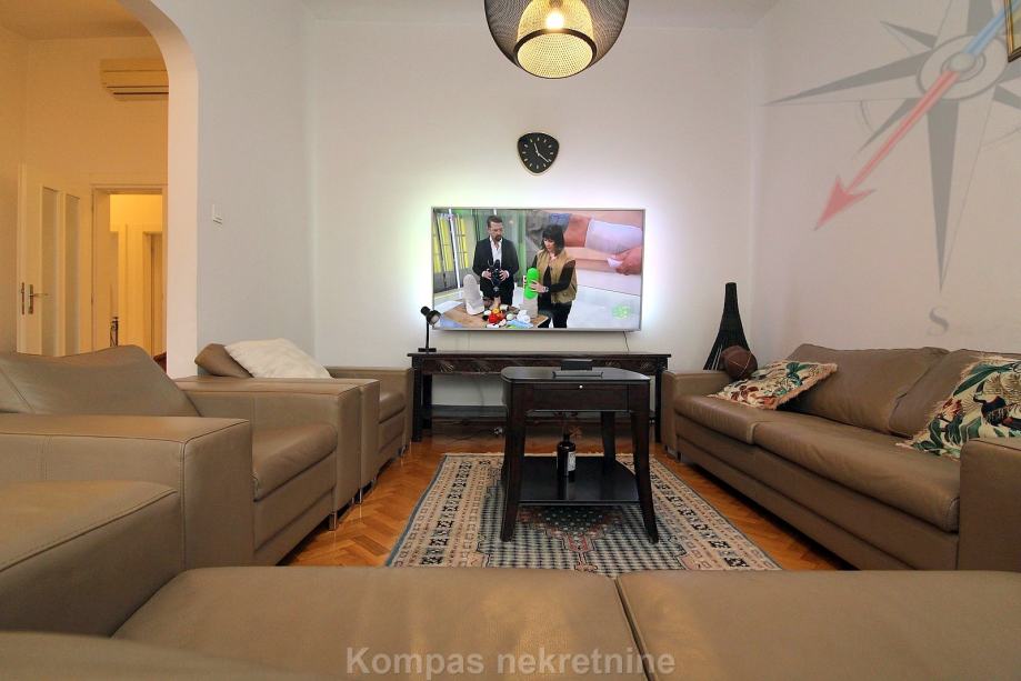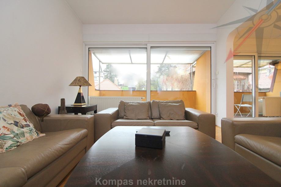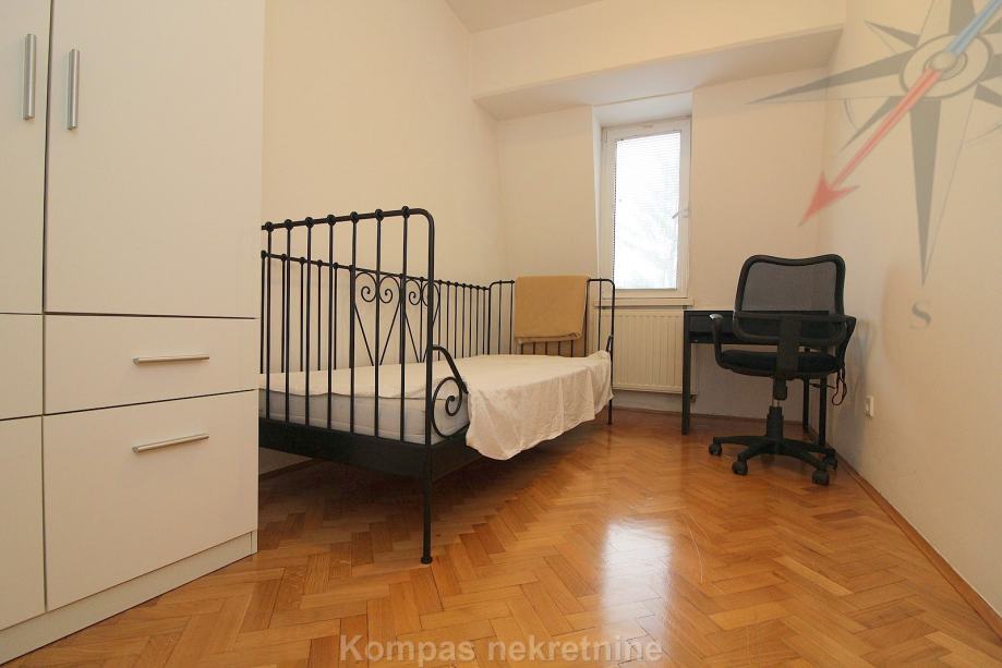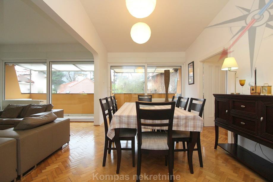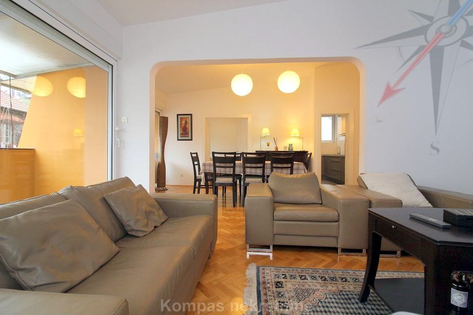Furnished 4-room apartment (110 m2) on the third floor of a smaller residential building without elevator, Pantovčak ulica. Consists of an entrance hall, living room, kitchen, dining room, three bedrooms, two bathrooms (one with a shower, the other with a massage tub), two balconies.