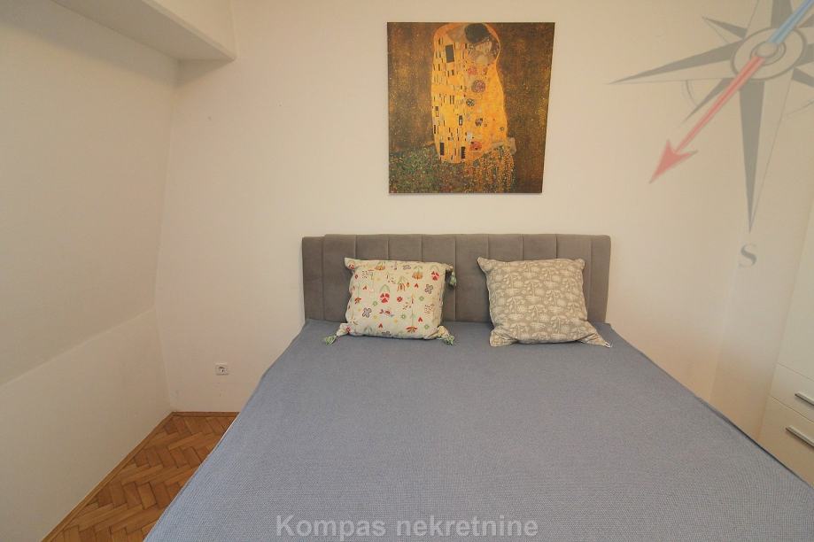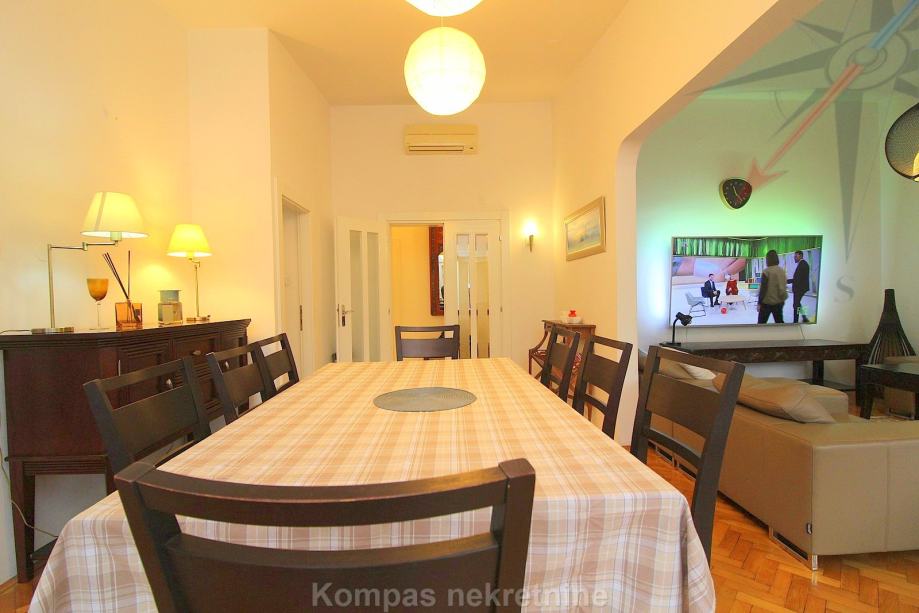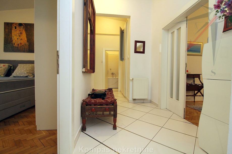 Namješten 4-soban stan ( 110 m2 ) na trećem katu manje stambene zgrade bez lifta, Ulica Pantovčak. Sastoji se od predsoblja, dnevnog boravka, kuhinje, blagovaone, tri spavaće sobe, dvije kupaonice ( jedna s tušem, druga sa masažnom kadom ), dva balkona.