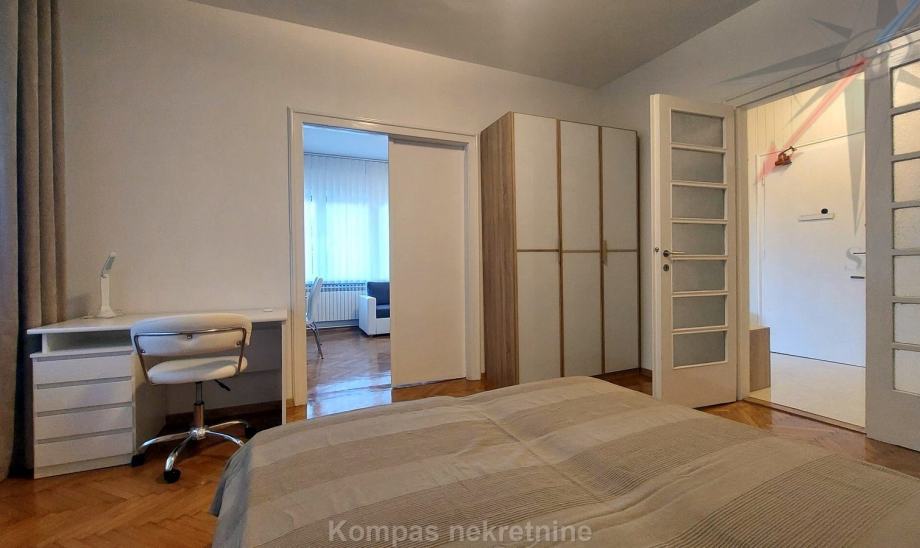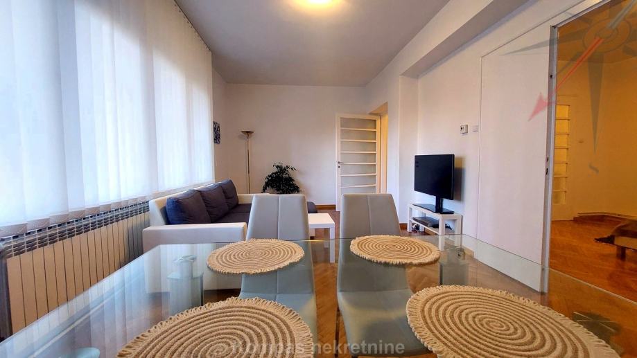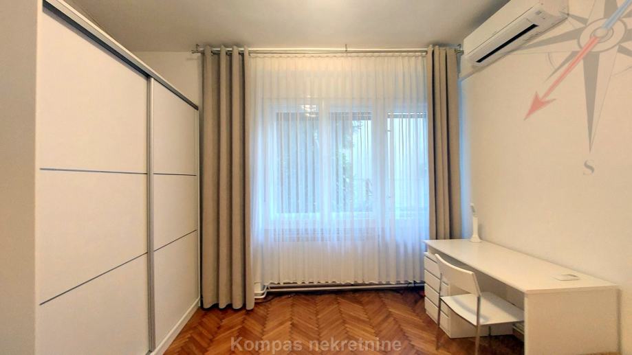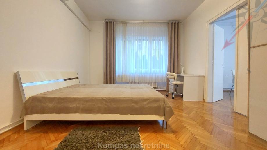 Namješten trosoban stan ( 80 m2 ) u visokom prizemlju stambene zgrade, Novakova ulica. Sastoji se od ulaznog prostora, dnevnog boravka, kuhinje, dvije spavaće sobe, kupaonice, toaleta, spremišta. Stan ima protuprovalna vrata, mogućnost brzog interneta, dva klima uređaja, plinsko etažno grijanje. Držanje kućnih ljubimaca i pušenje u stanu nije dozvoljeno. Parkiranje moguće na ulici. Nalazi se u blizini parka, javnog prijevoza i ostalih sadržaja centra grada.