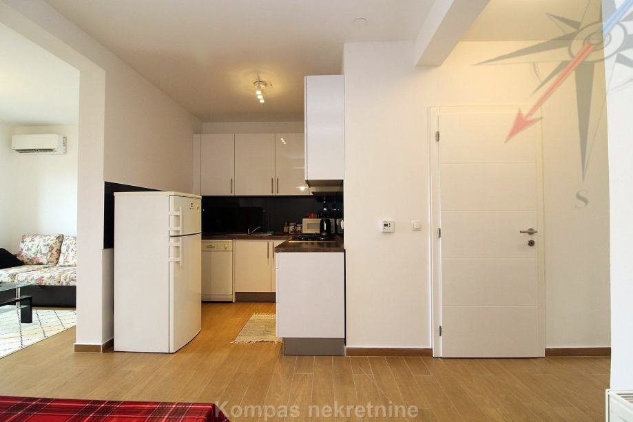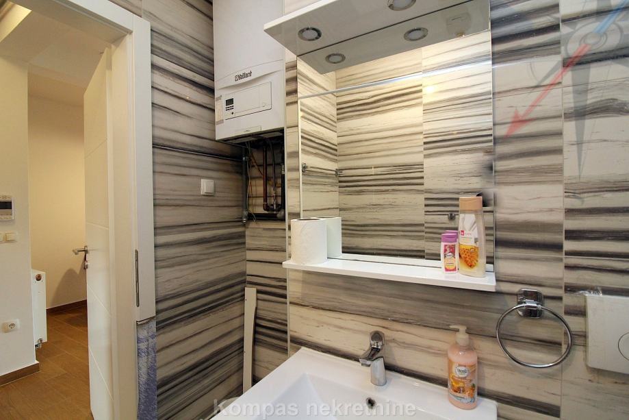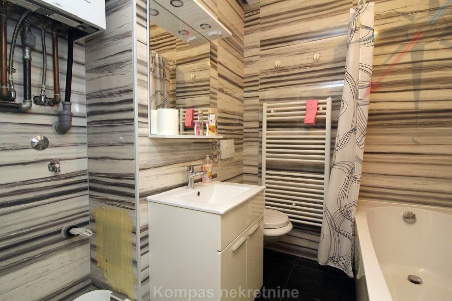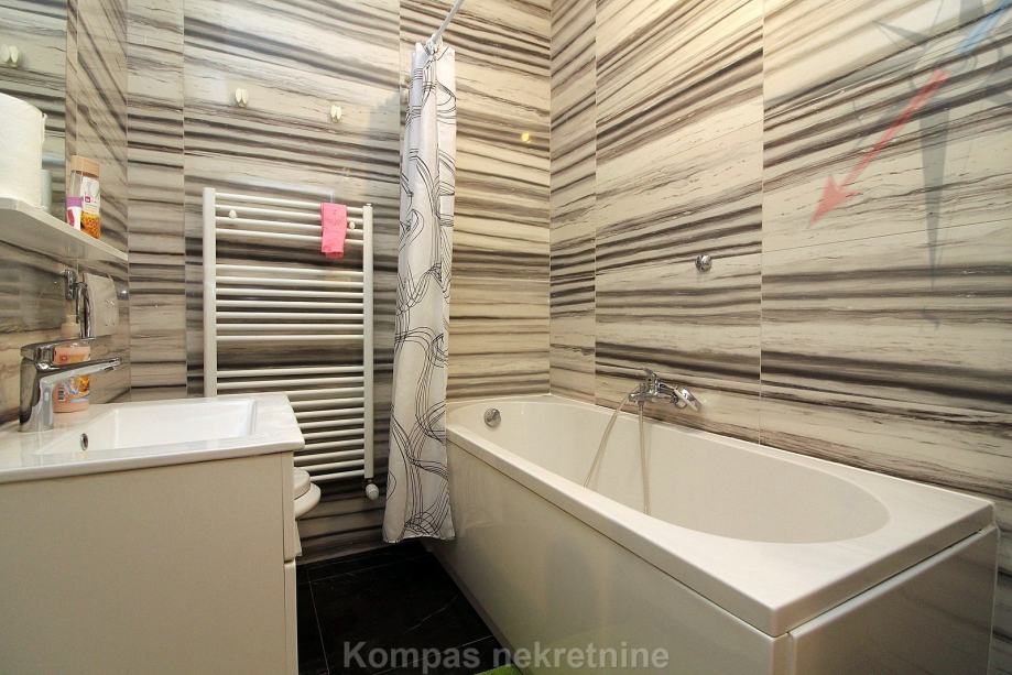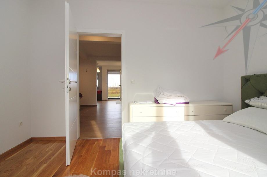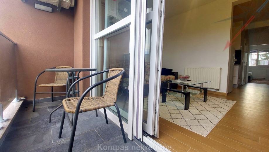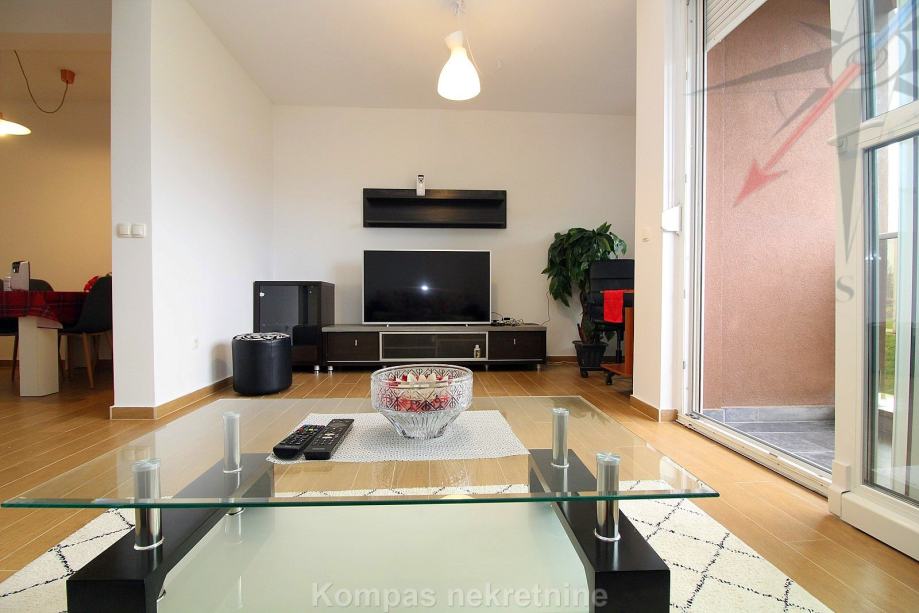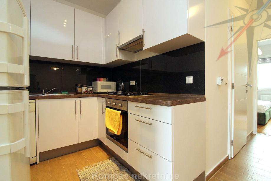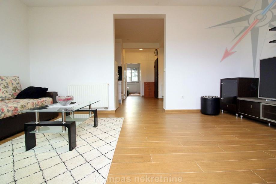Furnished two-room apartment (50 m2), on the first floor of a small new building without an elevator, Radoslava Cimermana Street. It consists of a kitchen, living room, bedroom, bathroom, loggia. It has a security door, air conditioning, high-speed internet, gas heating, underfloor heating. All meters are separate. The overhead costs are around 40 euros in the summer, higher in the winter depending on gas consumption. It comes with one parking space in the building's parking lot, which is protected by a remote-controlled ramp. The apartment is located near Lake Bundek, shopping centers, public transportation and major city roads.
