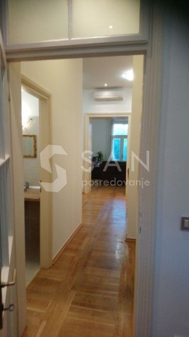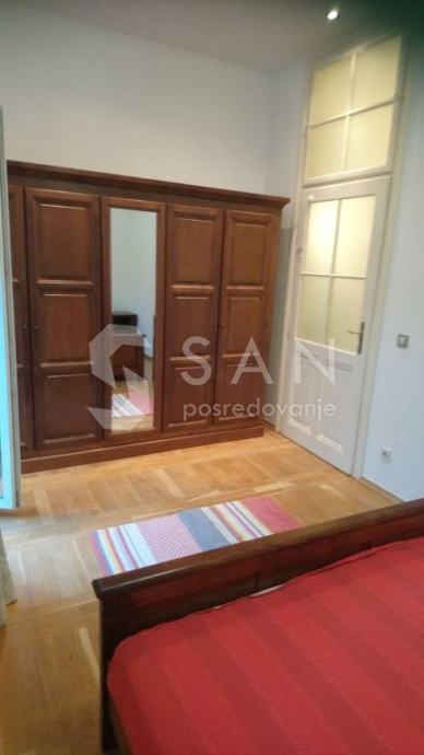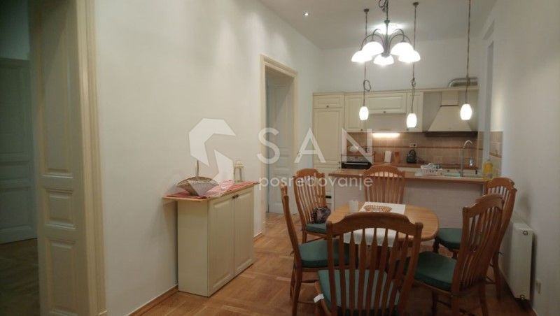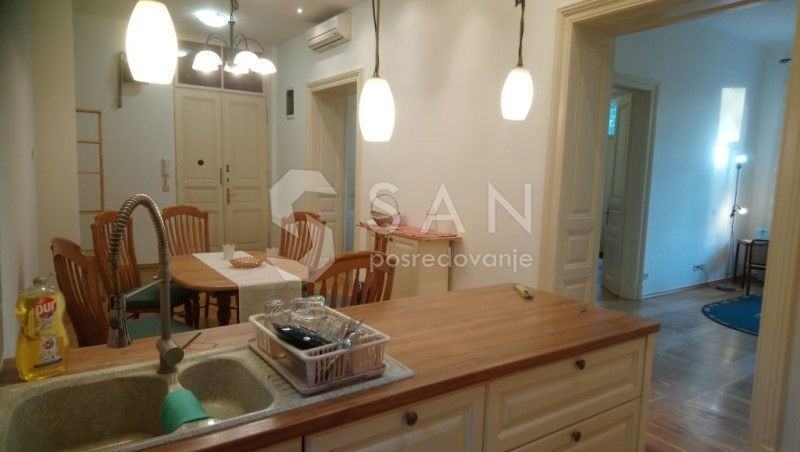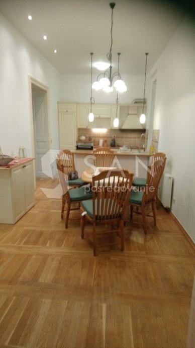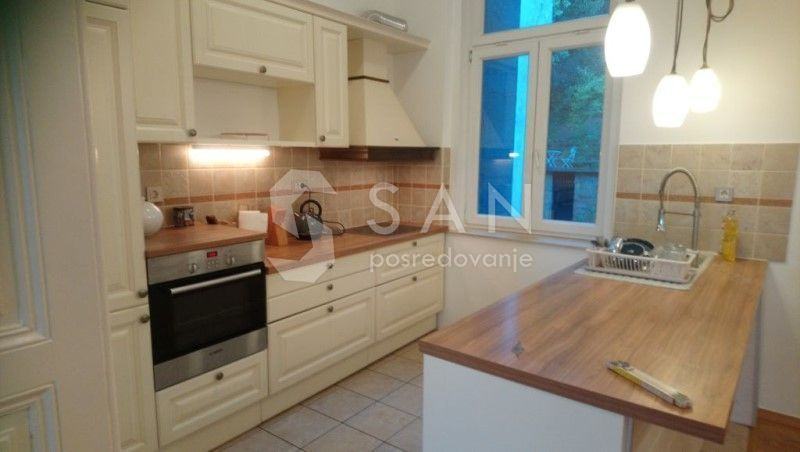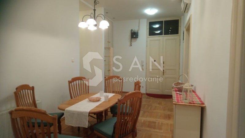 A furnished one-story apartment with a living area of 99 m2 is for rent. The apartment is located in a residential building located in the residential part of the city on Ribnjak Street. The apartment consists of an entrance area/hallway, balcony, two spacious bedrooms, bathroom, living room, furnished and fully equipped kitchen and dining room. The apartment is fully furnished so that it is suitable for all profiles of tenants. It has a functional kitchen fully equipped with functional household appliances such as: dishwasher, refrigerator with freezer, hob, oven, kitchen ventilation - hood, dining or meal preparation counter. The windows in the apartment have double wooden joinery that provides maximum thermal and sound insulation. The apartment has a north-south orientation, which provides plenty of daylight and airiness. Pets are not allowed. The heating is gas-fired (the apartment has its own gas meter), which allows for high-quality and safe heating with self-regulation of heat. The apartment has air conditioning. Water is calculated according to the number of people.