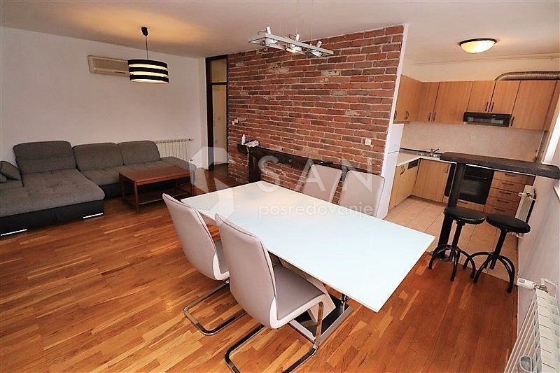 For rent, a newly renovated apartment with a net usable area of 59 m2 and one outdoor parking space. The apartment is located on the second floor of a newer residential building. The apartment consists of an entrance hall, two bedrooms, living room, kitchen, dining room, bathroom and one outdoor parking space in front of the building. The apartment is furnished, has a functional kitchen, sofa - corner set, bed with mattress, TV, wardrobe that can serve as additional storage in the apartment. The apartment has PVC joinery that provides maximum heat and sound insulation. Pets are not allowed. The apartment has a north-west orientation, which provides the possibility of easier natural ventilation. The heating is gas-fired, which makes it possible to regulate the heating. The apartment has air conditioning.