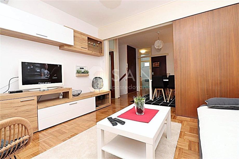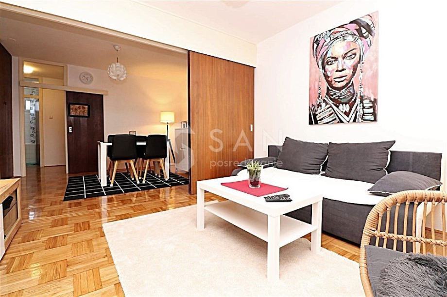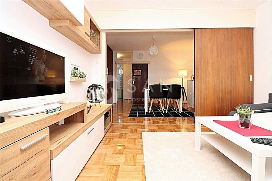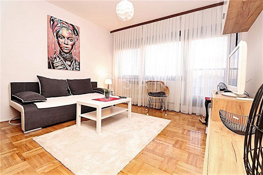 Stan je renoviran; nova PVC stolarija, novi parket i klima, novi namještaj.
