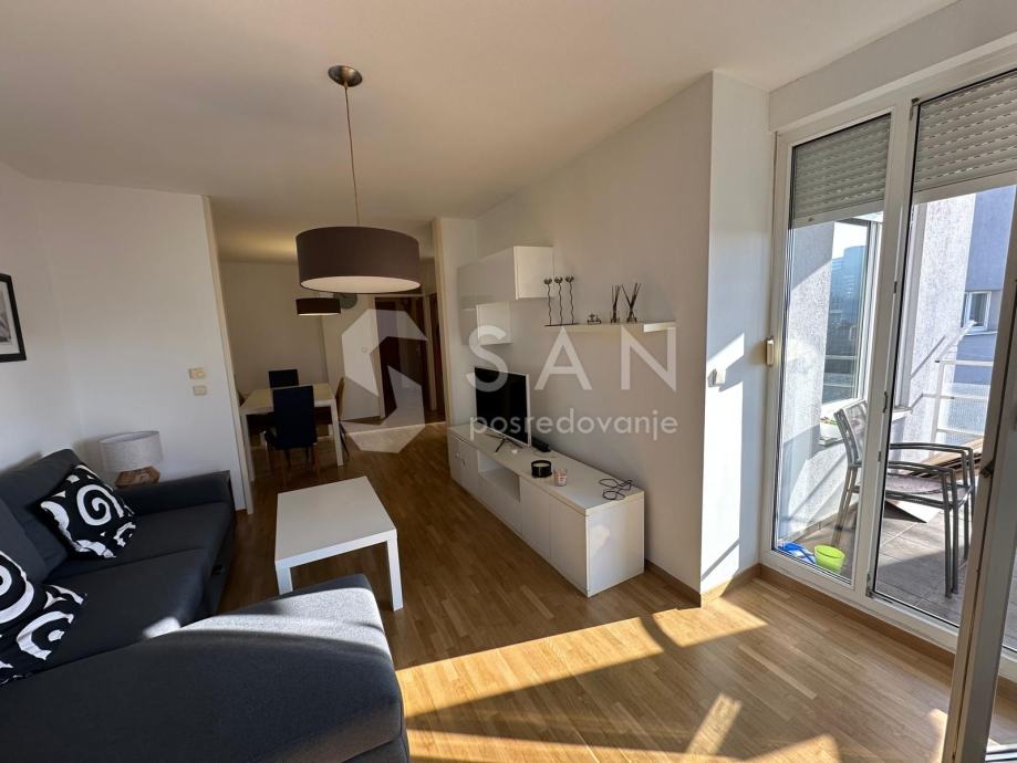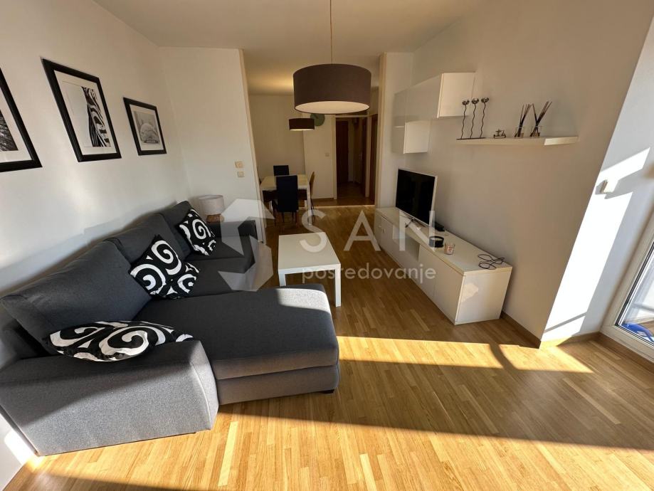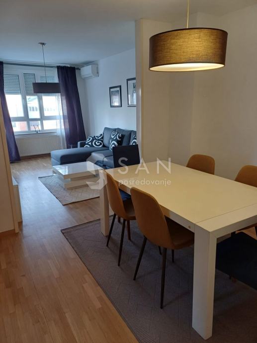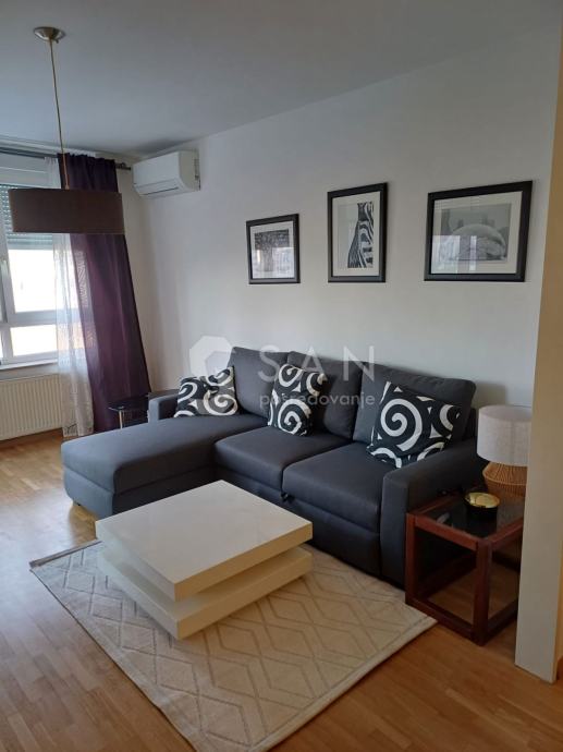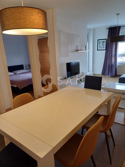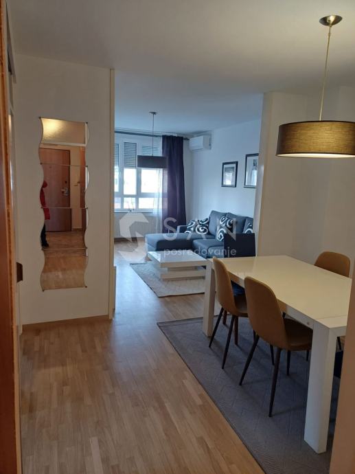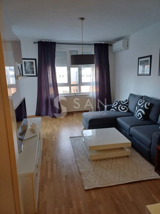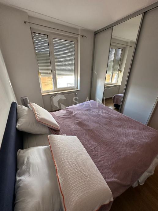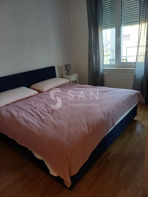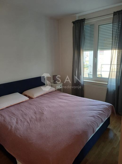 Iznajmljuje se stan površine 52 m2 koji se nalazi na trećem katu novije stambene zgrade. Zgrada je smještena u blizini glavnih gradskih prometnica uz pomoć kojih se lakoćom polazi prema ostatku grada. Stan se sastoji od ulaznog dijela, dnevne sobe i blagovaone opremljene kuhinje koja je potpuno opremljena sa svim uređajima. Dodatno u stanu se još nalazi i kupaonica gdje se uz vrhunsku keramiku i kupaonske elemente nalazi i perilica, prostrana spavaća soba gdje se nalazi udoban krevet te ormar te lođa sa koje se pruža prekrasan i nesmetan pogled prema gradu. Orijentacija stana je jugo-zapad, zapad što pruža dosta dnevnog svjetla. Stan ima klimu.