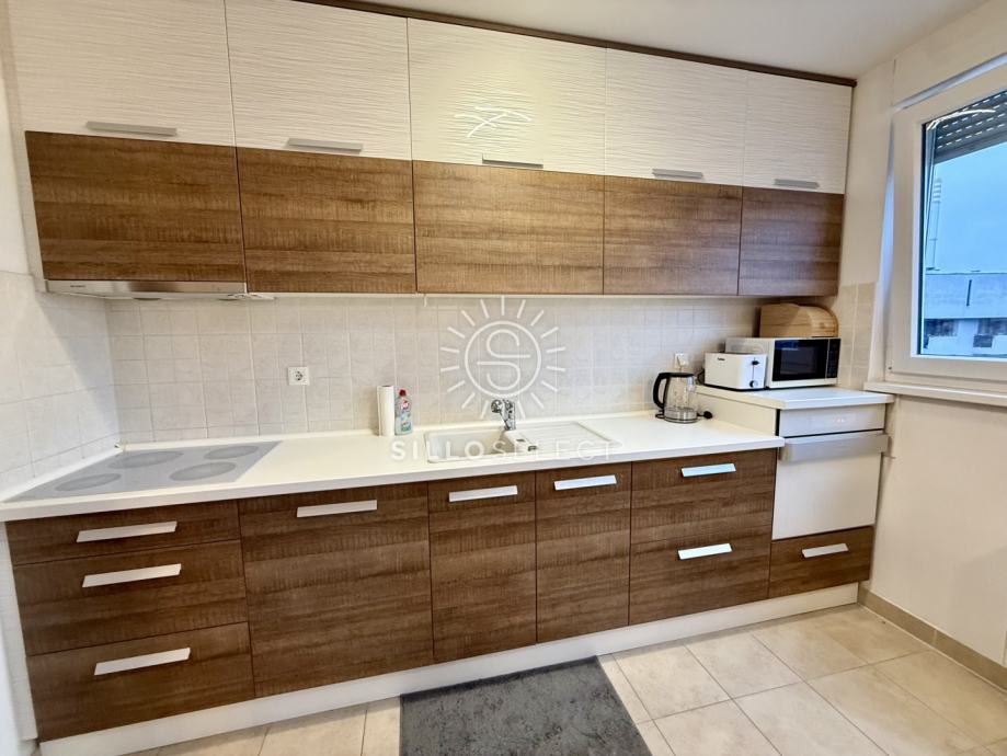Iznajmljuje se trosobni stan smješten na IV. katu uredno održavane stambene zgrade novije gradnje iz 2013. godine, u mirnoj i traženoj ulici Sunčane Škrinjarić. Ukupna netto korisna površina stana iznosi 71,68 m², od čega je korisna površina stana 64,27 m², dok mu neodvojivo pripada loggia površine 8,58 m² te spremište u podrumu na etaži -1 površine 1,93 m².