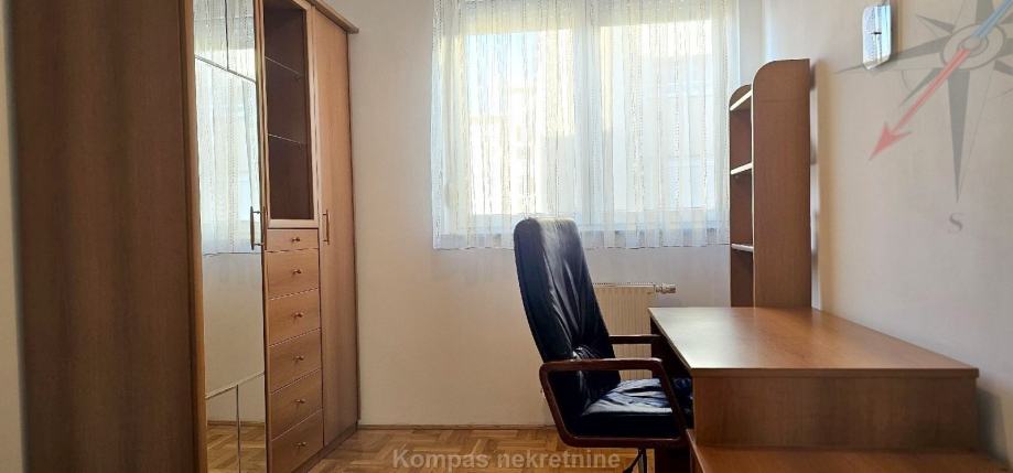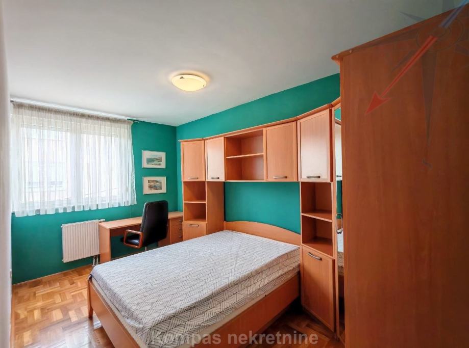 Namješten trosoban stan ( 75 m2 ) na drugom katu stambene zgrade s liftom, Bobovačka ulica. Sastoji se od hodnika, spremišta, kuhinje, dnevnog boravka s izlazom na loggiu, dvije spavaće sobe, kupaonice i toaleta. Ima protuprovalna vrata, etažno plinsko grijanje, klima uređaj, mogućnost brzog internet. Držanje kućnih ljubimaca nije dozvoljeno. Stanu pripada jedno vanjsko parkirno mjesto. Zgrada ima pristup za osobe s invaliditetom. Nalazi se u blizini javnog prijevoza, škola, Trešnjevačkog placa.