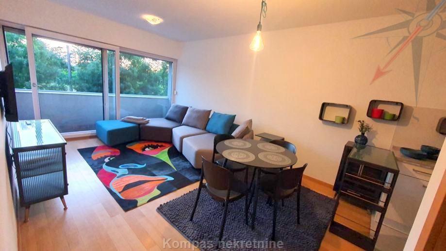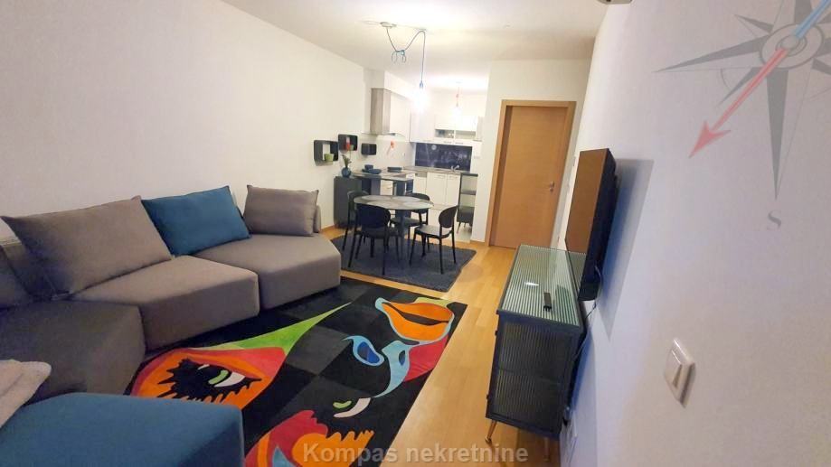 Furnished two-room apartment of 57 m2 on the first floor of a newer building with an elevator (Tehnopaneli), Zaharova street. It consists of a hallway, kitchen, living room with access to a narrow balcony, bedroom with walk-in closet, bathroom. It has a video intercom, security door, air conditioning, high-speed internet, floor gas heating. The apartment has a garage that can be opened by remote control. Located near several tram and bus lines, the bus station and the business zone in Radnička. The building has excellent heat, sound and thermal insulation. Spacious staircases and corridors, top fire protection such as fire wallpaper, sprinklers, hydrants, etc. The building has full video surveillance with 36 cameras, 2 spacious elevators that have their own generator in case of power failure. In the basement of the building there is a separate atomic shelter for 300 people. There is ambient wall lighting in all stairwells. The stairs are made of granite with stainless steel railings. Staircases and garages have their own ventilation. The quality of the construction is evident through excellent heat, sound and thermal insulation, spacious staircases and corridors with ambient wall lighting, and top fire protection that includes fire wallpaper, sprinklers, hydrants and other safety measures.
