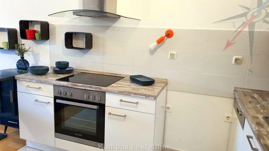 Namješten dvosoban stan od 57 m2 na prvom katu novije zgrade s liftom ( Tehnopaneli ), Zaharova ulica. Sastoji se od hodnika, kuhinje, dnevnog boravka s izlazom na uski balkon, spavaće sobe s walk in ormarom, kupaonice. Ima video portafon, protuprovalna vrata, klima uređaj, mogućnost brzog interneta, etažno plinsko grijanje. Stanu pripada garaža koja se otvara daljinskim upravljačem. Nalazi se u blizini nekoliko tramvajskih i autobusnih linija, autobusnog kolodvora i poslovne zone u Radničkoj. Zgrada ima vrhunsku toplinsku, zvučnu i termo izolaciju. Prostrana stubišta i hodnici, vrhunska protupožarna zaštita poput protupožarnih tapeta, sprinklera, hidranta i sl. Pričuva za stan je 27 eura. Zgrada ima potpuni videonadzor s 36 kamera, 2 prostrana lifta koji imaju svoj agregat u slučaju nestanka struje. U podrumu zgrade nalazi se odvojeno atomsko sklonište za 300 ljudi. U svim stubištima nalazi se ambijentalna zidna rasvjeta. Stepeništa su od granita s ogradama od inoxa. Stubišta i garaže imaju svoju ventilaciju. Kvaliteta gradnje očituje se kroz izvrsnu toplinsku, zvučnu i termo izolaciju, prostrana stubišta i hodnike s ambijentalnom zidnom rasvjetom, te vrhunsku protupožarnu zaštitu koja obuhvaća protupožarne tapete, sprinklere, hidrante i druge sigurnosne mjere.