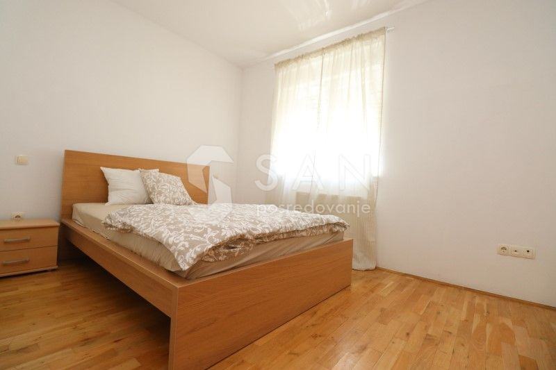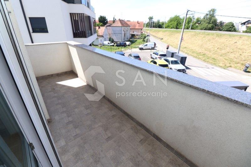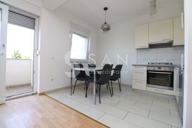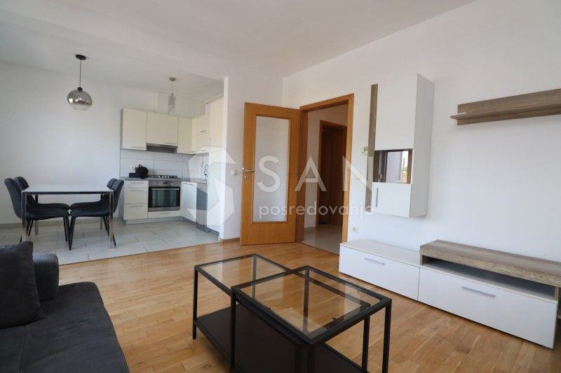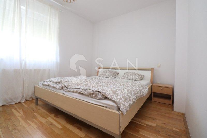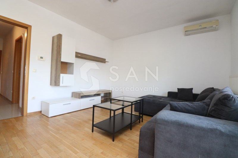 Iznajmljuje se uređeni jednoetažni dvosobni stan stambene površine 73 m2. Stan se nalazi u stambenoj zgradi koja je smještena u urbanom dijelu naselja Trokut u blizini prometnica koje naselje povezuju sa susjednim naseljima Trnsko i Savski gaj te u neposrednoj blizini izlaza prema glavnoj gradskoj prometnice Aveniji Dubrovnik. Stan se sastoji od ulaznog dijela/predsoblja, balkona , tri prostrane sobe (dvije spavaće + dnevna), kupaonice , uređene i opremljene kuhinje i blagovaona, balkona i jedno vanjsko parkirno mjesto. Stan je uređen da je pogodan za sve profile najmoprimaca kao što su zaposleni samici ili zaposleni parovi bez kućnih ljubimaca. Ima funkcionalnu kuhinju potpuno opremljenu funkcionalnim kućanskim aparatima kao što su: hladnjak s ledenicom, ploča za kuhanje, pećnica, kuhinjska ventilacija – napa,. Na prozorima u stanu je pvc stolarija koja pruža maksimalnu toplinsku i zvučnu izolaciju. Stan ima istok-zapad orijentaciju što pruža obilje dnevnog svjetla i prozračnost. Kućni ljubimci nisu dozvoljeni. Grijanje je plinsko etažno centralno što omogućuje kvalitetno i sigurno grijanje uz mogućnost samoregulacije topline. Stan ima klimu. Voda se obračunava prema broj osoba.