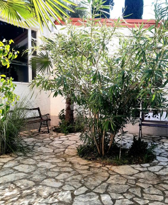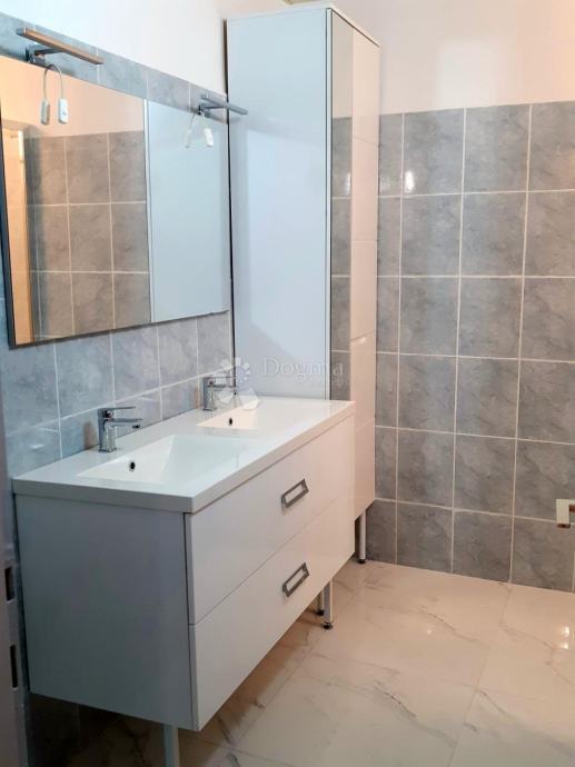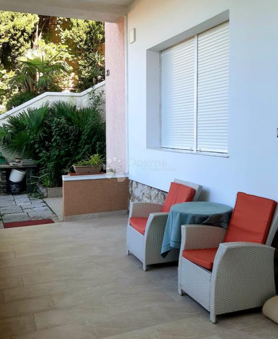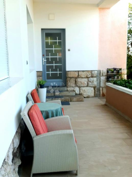 Stan se sastoji od prostranog dnevnog boravka, nove i potpuno opremljene kuhinje, dvije komforne spavaće sobe, garderobe, kupaonice te dodatnog odvojenog toaleta. Funkcionalan raspored prostorija omogućuje ugodan boravak i lako organiziranje životnog prostora. Posebna prednost je izlaz na natkrivenu terasu koja se može koristiti tijekom cijele godine, kao i pristup lijepo uređenom vrtu, što čini stan osobito pogodnim za opuštanje i druženja na otvorenom.
