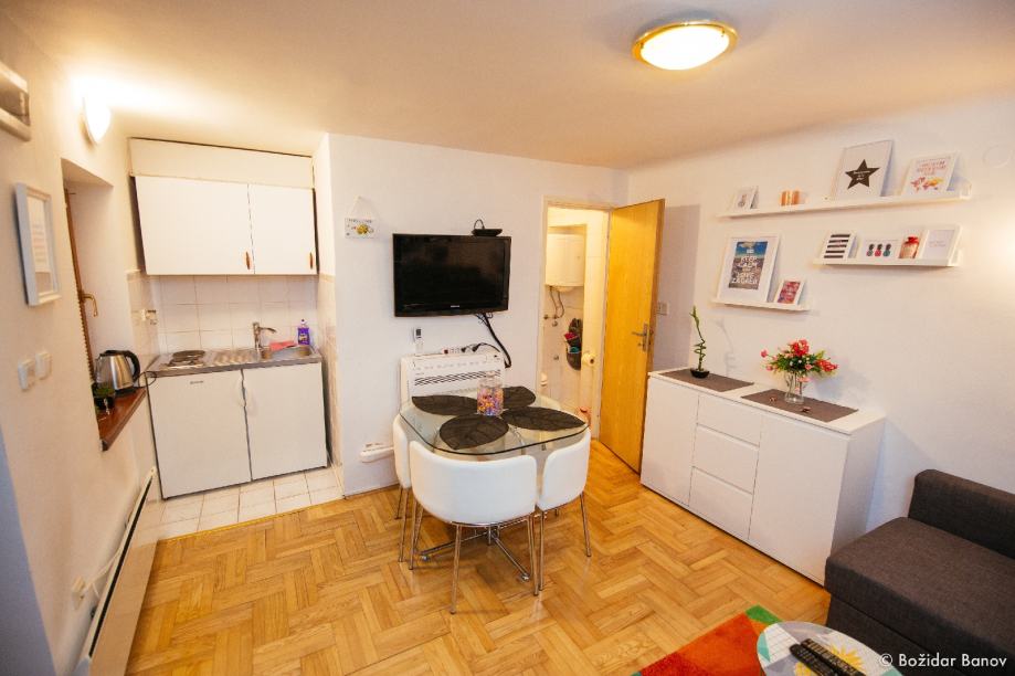 Iznajmljujem namješten stan u centru grada na duži period. Stan se sastoji od dvije sobe( dnevni boravak s malom kuhinjom i kupaonicom te spavaćom sobom s WC-om). Stan je potpuno namješten i spreman za najam. Pogodan za studente. Cijena 550,00 eura + režije. dostupan od 10.07