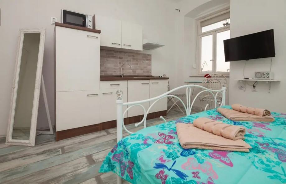 Studio se nalazi u neposrednoj blizini glavnog trga u stambenoj zgradi na drugom katu. Na raspolaganju su perilica i sušilica rublja u zajedničkoj prostoriji.