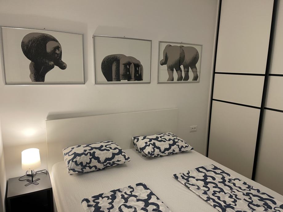 Spavaća soba ima krevet 160×200 cm, sa otklopnim mehanizmom (podiže se madrac) za dodatni prostor u koji možete odloziti stvari, te ormar sa kliznim vratima.