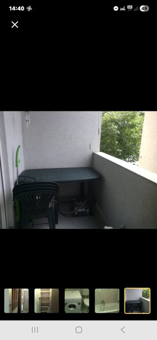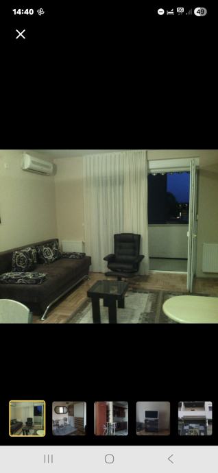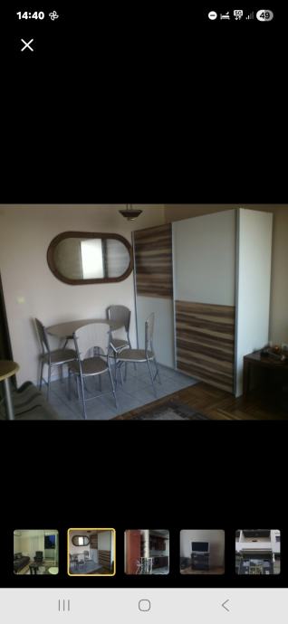 Iznajmljujem jednosoban stan od 38 m² na prvom katu stambene zgrade. Zgrada ima pet katova. Stan ima dnevni boravak s blagovaonskim dijelom i kuhinju opremljenu a kupaonica ima WC i kadu.Ima balkon i ostavu.