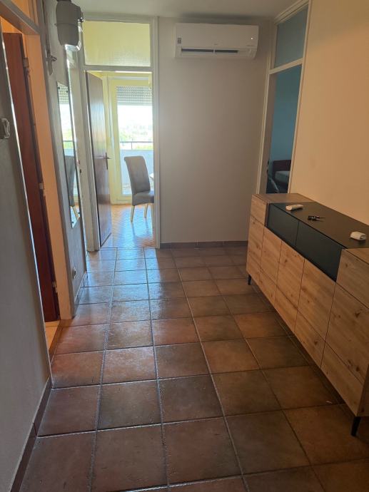 Obje sobe su namještene - u jednoj se nalazi bračni krevet, naslonjač i veći ormar s kliznim vratima, a u drugoj krevet, komoda i ormar. Hodnik je prostran, s keramičkim podom i klima uređajem montiranim na zidu. Stan ima balkon koji se vidi u prolazu kroz hodnik. Kupaonica s WC-om je jedna.