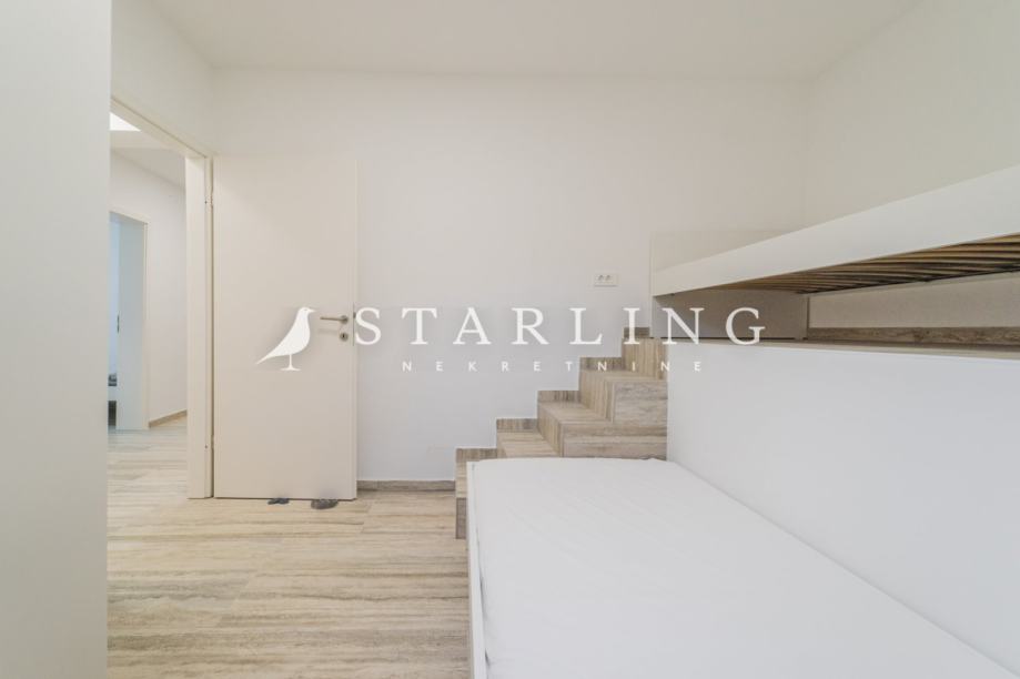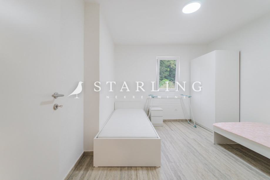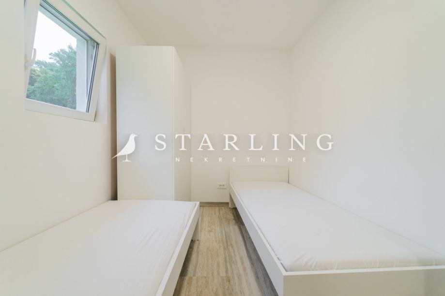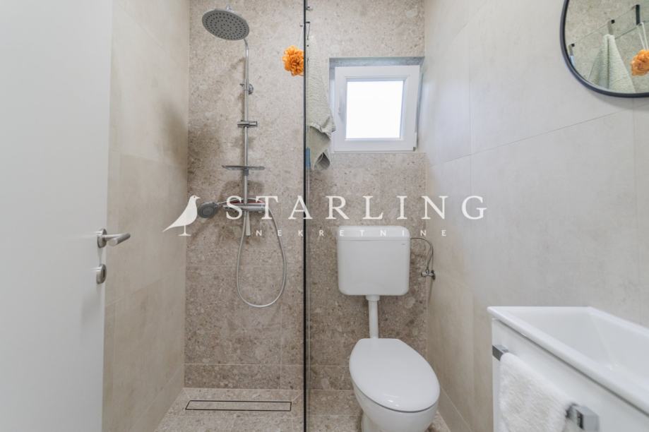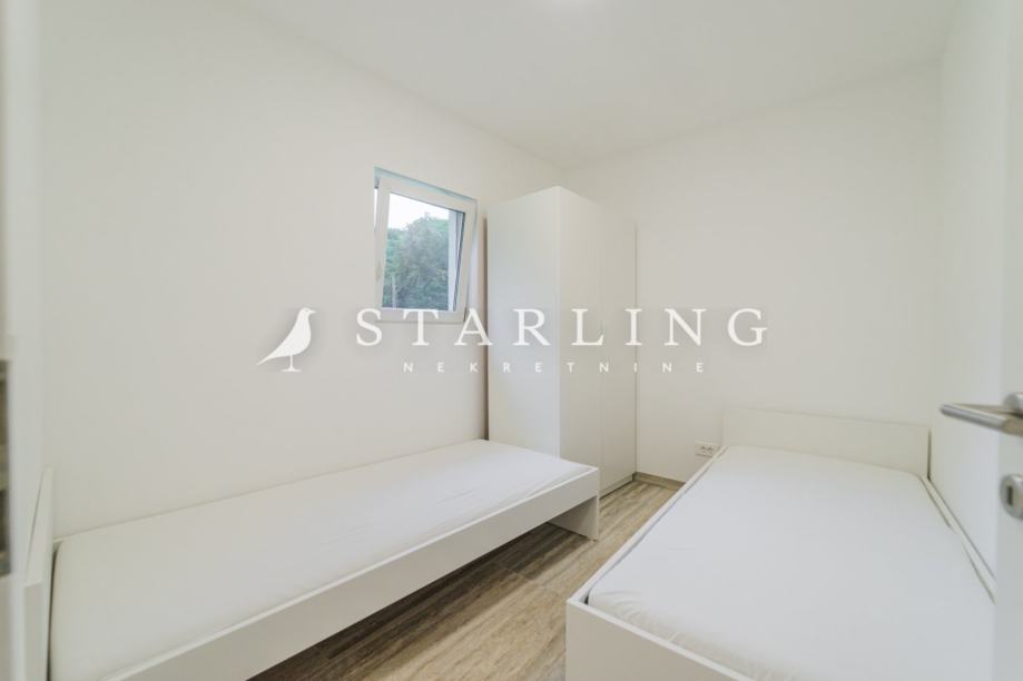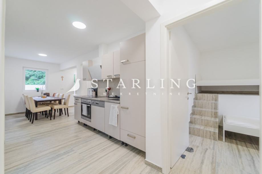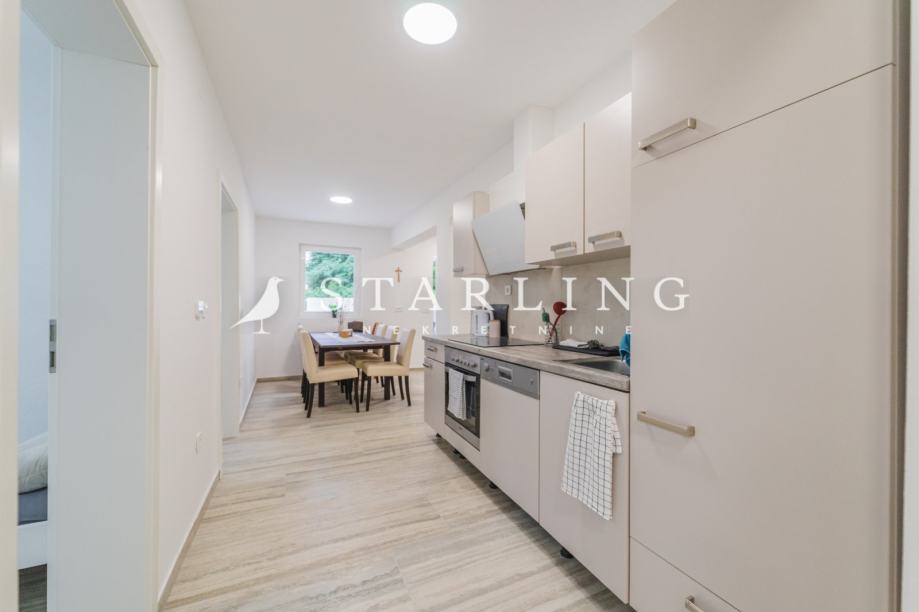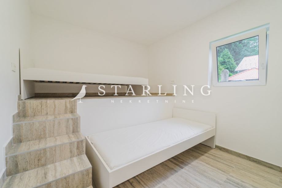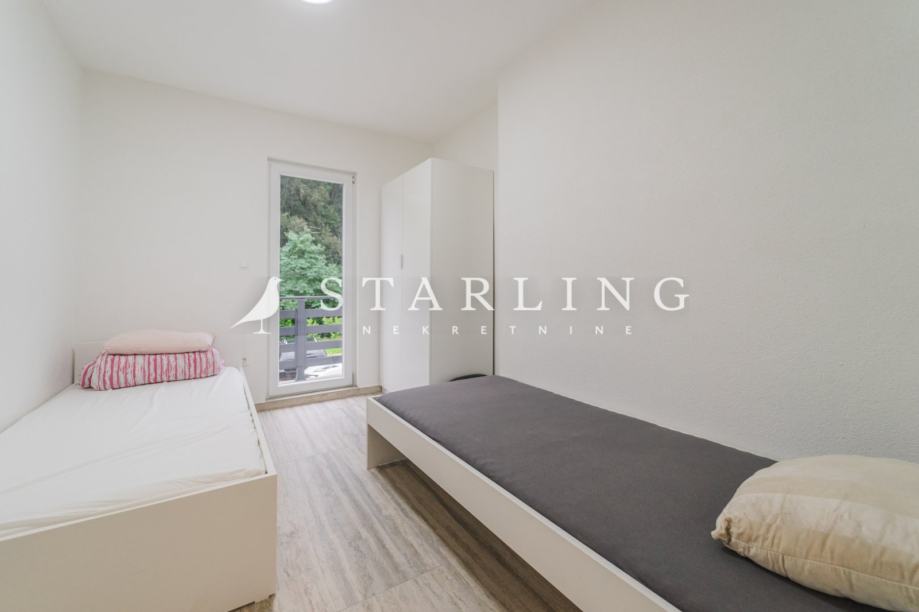 Stan ima izrazito funkcionalan raspored s dva sanitarna čvora, prekrasan pogled na šumu i zajedničko dvorište.