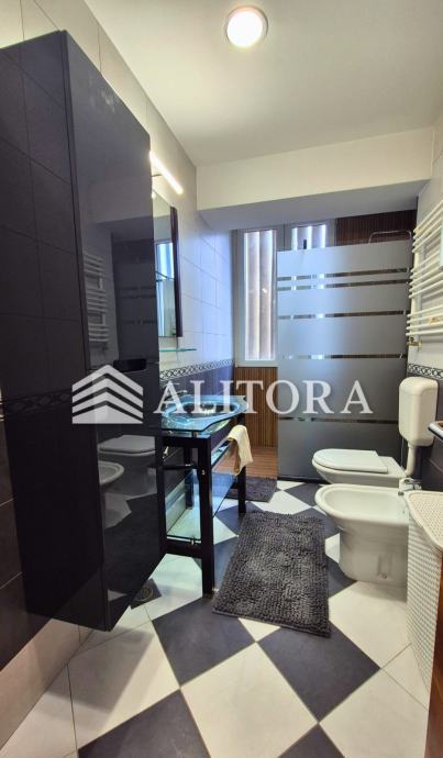 Stan se sastoji od ulaznog hodnika, kupaonice s WC-om, dodatnog zasebnog WC-a, dvije spavaće sobe, te svijetlog dnevnog boravka povezanog s blagovaonicom i kuhinjom. Pripada mu i praktično spremište smješteno u prizemlju zgrade, što dodatno povećava funkcionalnost prostora.