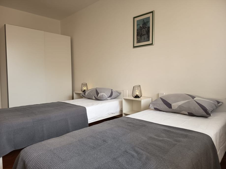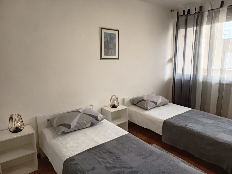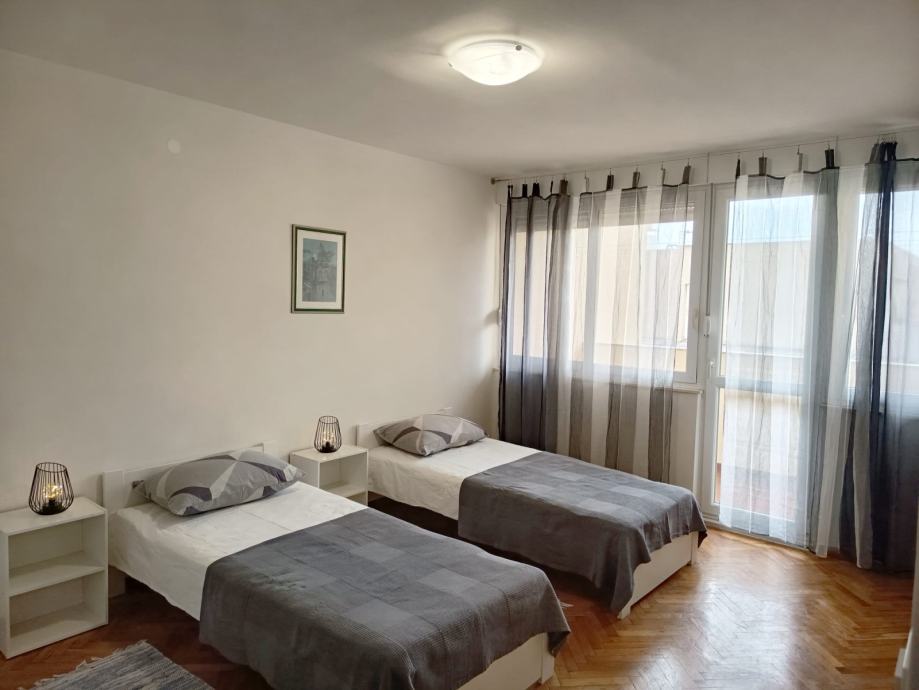 Iznajmljuje se namješten dvosobni stan,površine 70m2 u stambenoj zgradi, IV kat.Orijentacija stana je istok-zapad, na križanju Vukovarske i Dubrovačke ulice.Renoviran 2025 god.Stan se sastoji od 2 prostrane sobe,dnevnog boravka s blagavaonicom,kuhinje s ostavom,kupaonice,dodatne ostave i lođe.Kućni ljubimci nisu dobrodošli.Dostupan cijele godine-dugoročni najam.