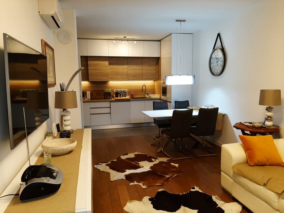 STAN JE TROSOBAN, MODERNO UREĐEN SA POTPUNO NOVIM NAMJEŠTAJEM KAO I SVIM POTREBNIM UREĐAJIMA, UKLJUČUJUĆI BIJELU TEHNIKU.