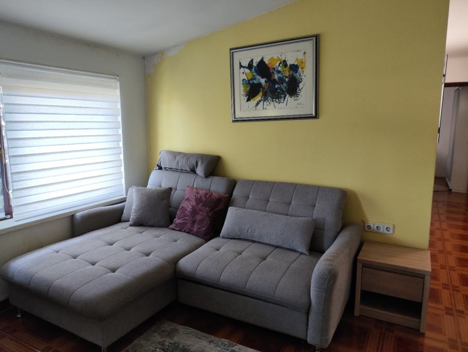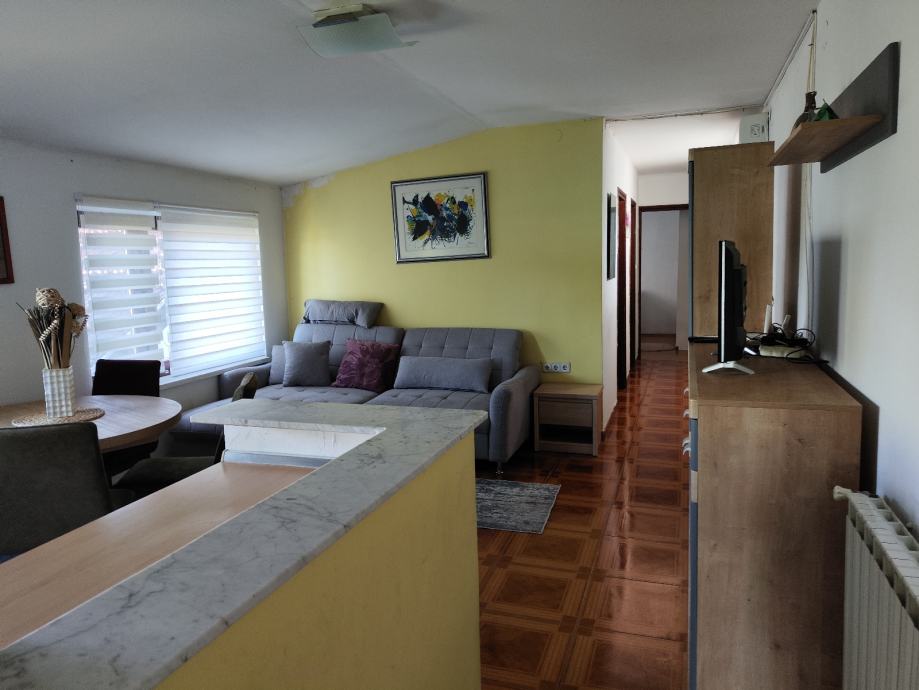 Dajem u najam stan u obiteljskoj kući. 52 kvadrata stambenog prostora (dvije sobe, kuhinja, kupaona). Dvije vanjske velike terase. Zatvorena terasa ima 13 kvadrata,te vanjska ima 20 kvadrata). Uz stan nudim i parkirno mjesto ( moguće je i dva auta parkirati). Mirno naselje 5 minuta hoda do tramvaja.